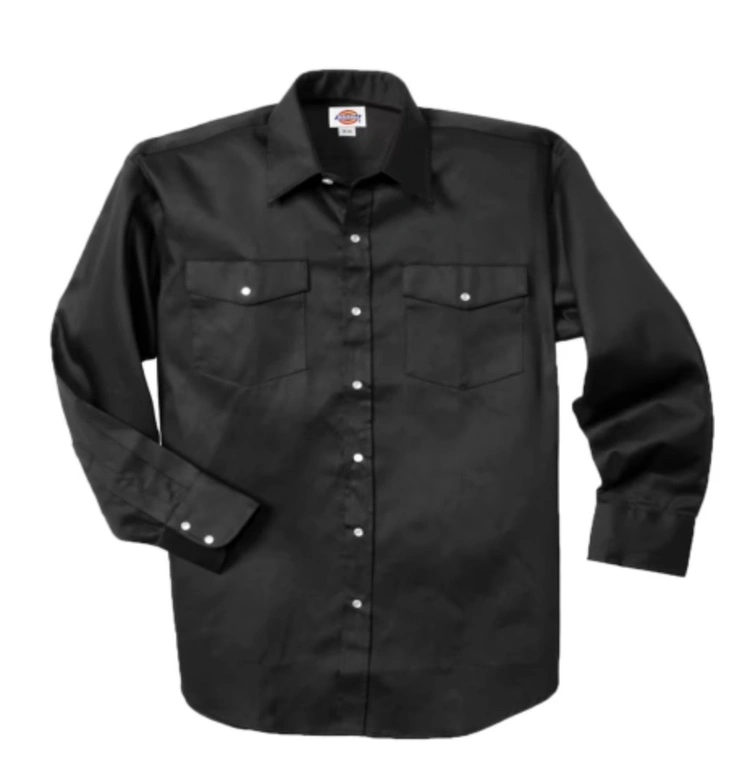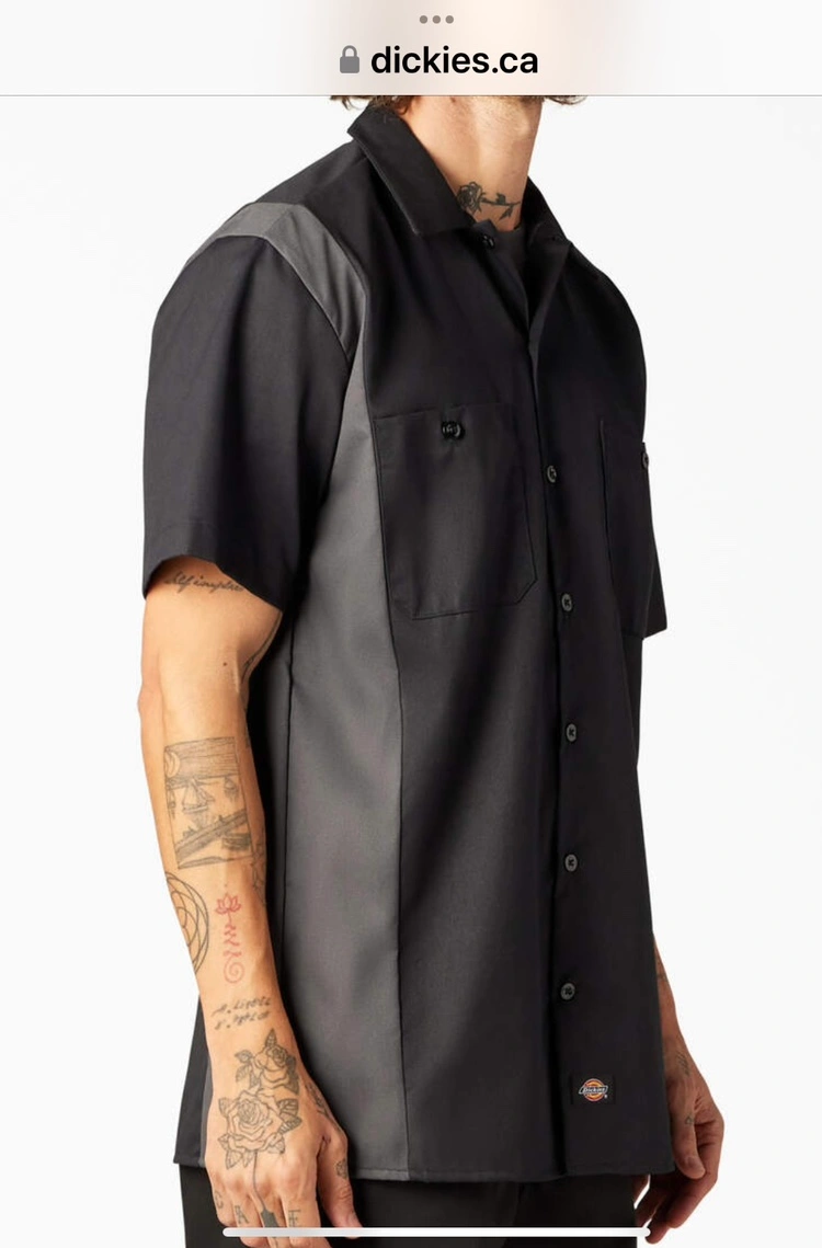 49New with original tags Dickies 1221 BK black long sleeve. Snap front work shirt. Extra large. Neck 17 1/2. Polycotton Twill fabric with stain release. 65% polyester 35% cotton Permanent stand-up collar with two chest pockets Snap closure on placket, pocket flaps, and cuffs Pen slot on left chest pocket $50 New with tags attached Dickies LS524 BKCH. Two tone short sleeve workshirt Extra large. Neck 17 1/2. Black/charcoal gray 5.25 oz wrinkle resistant twill blend 65% polyester 35% cotton Two button chest pocket $40