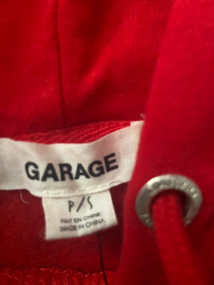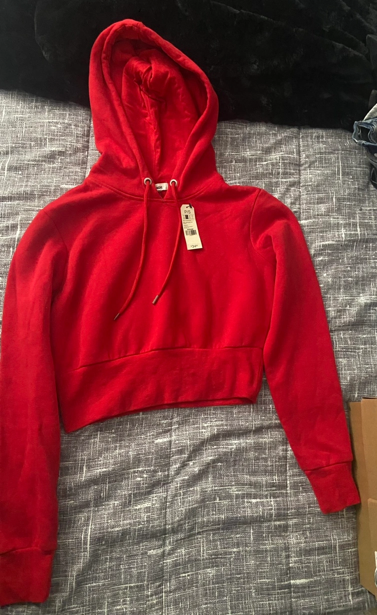 Two crop top sweatshirts, one red with a hood and one green with a zipper. Both are size small. Reg garage sweatshirt is bnwt $25