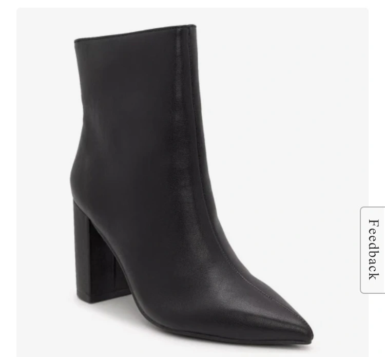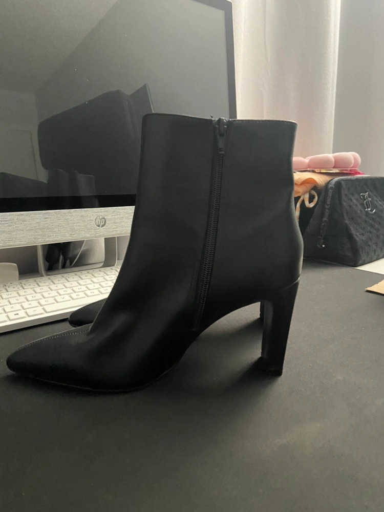 These are black leather ankle booties with a block heel. Purchased and never ended up wearing them.