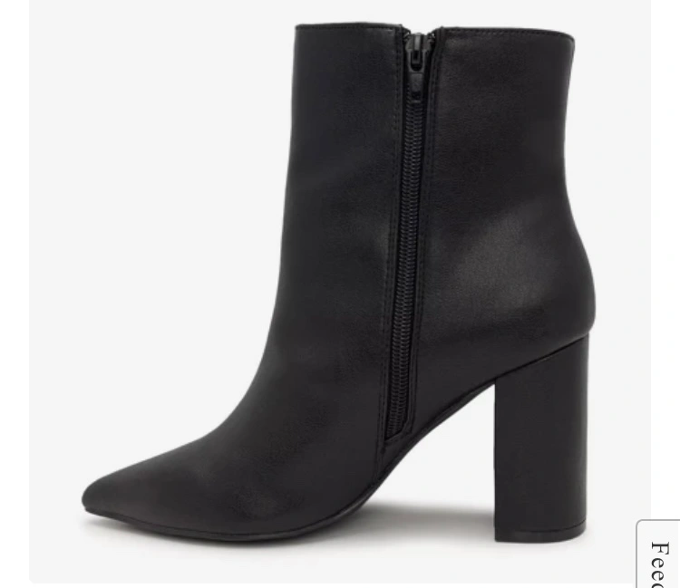 These are black leather ankle booties with a block heel. Purchased and never ended up wearing them.