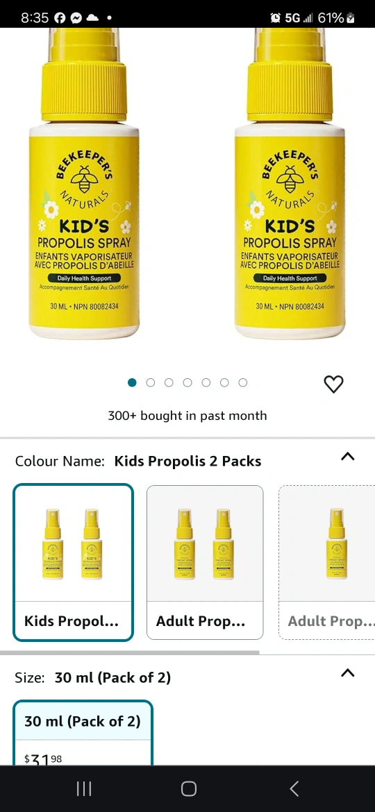 A pack of two 30 mL bottles of Beekeeper's Naturals Kid's Propolis Spray.
