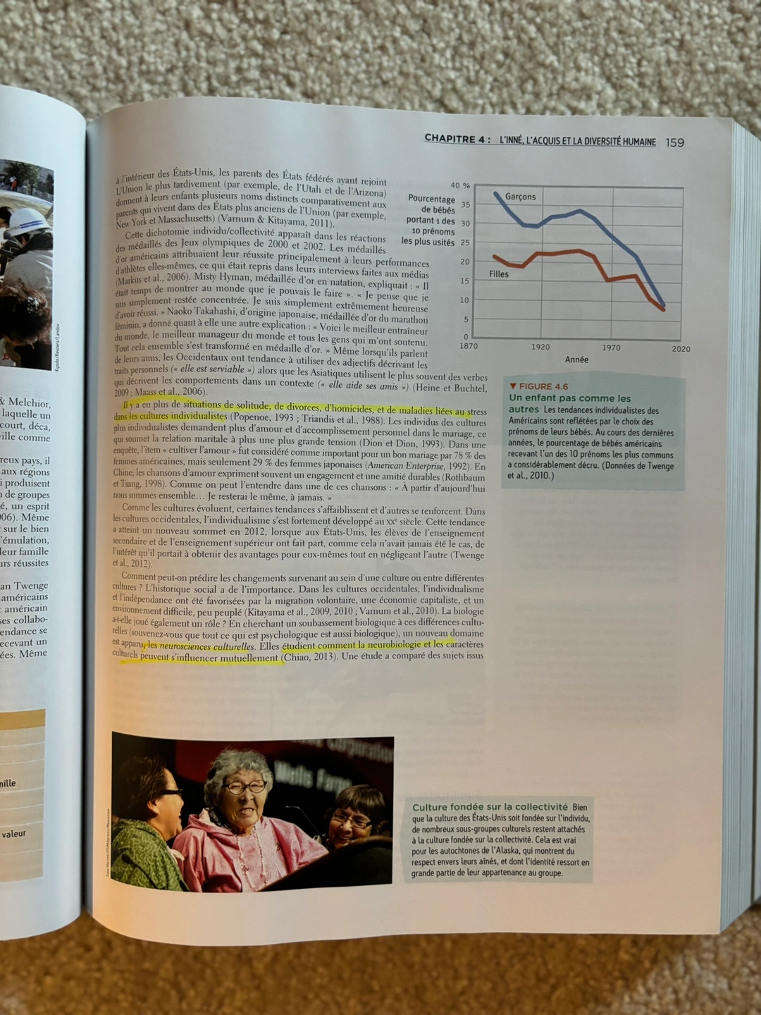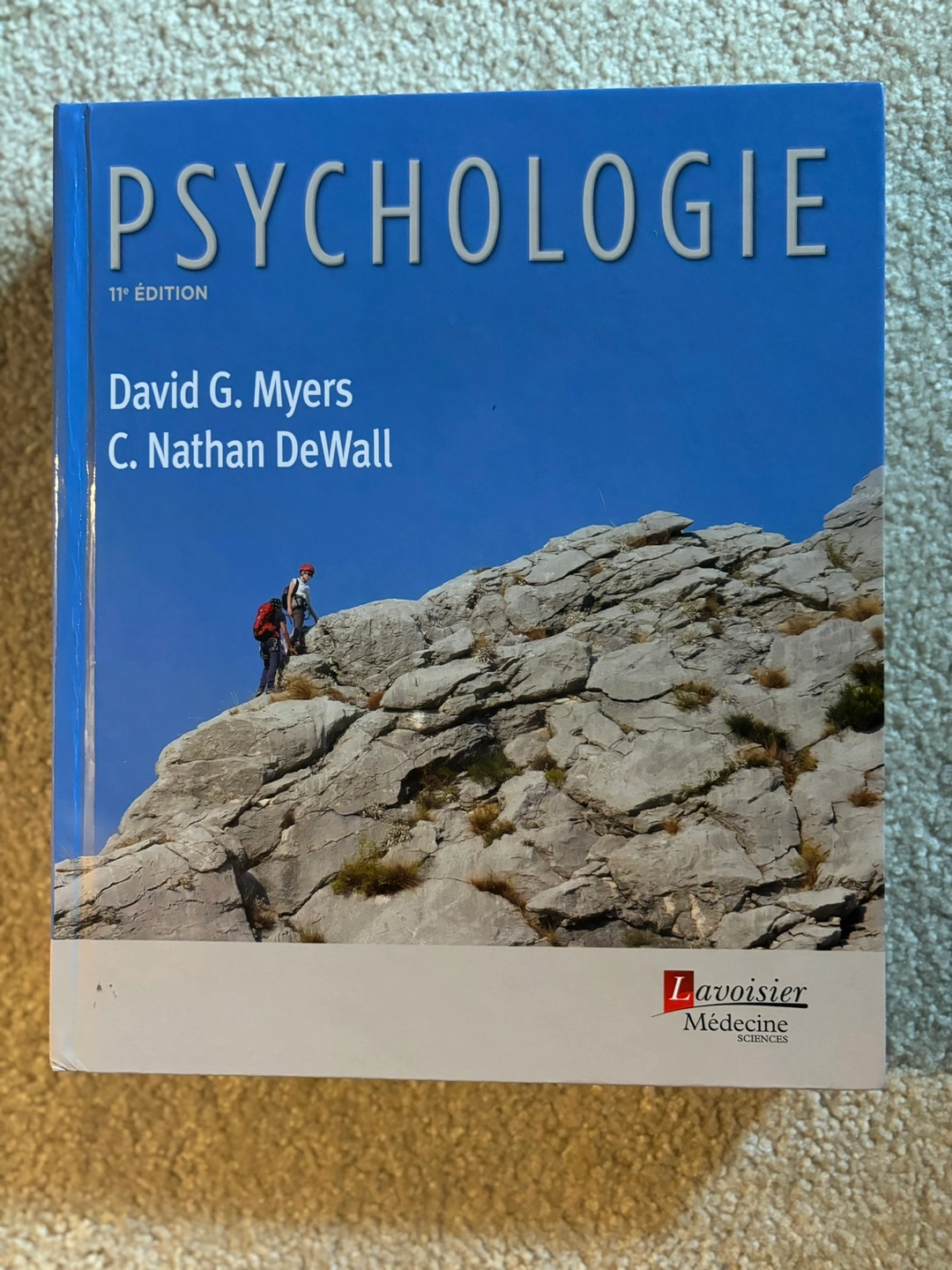 Traité de psychologie générale. Psychologie de David G. Myers et C. Nathan DeWall. Textbook on general human psychology. 11th edition, good quality, some highlights but book is still readable.