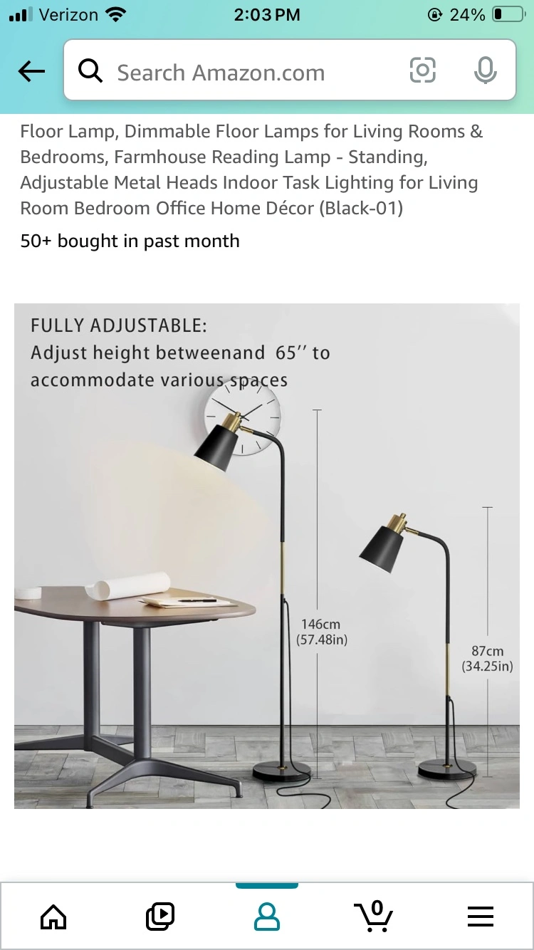 Gold and black floor lamp. Adjustable height and angle. Moving sale!