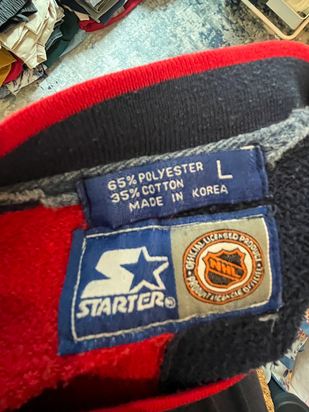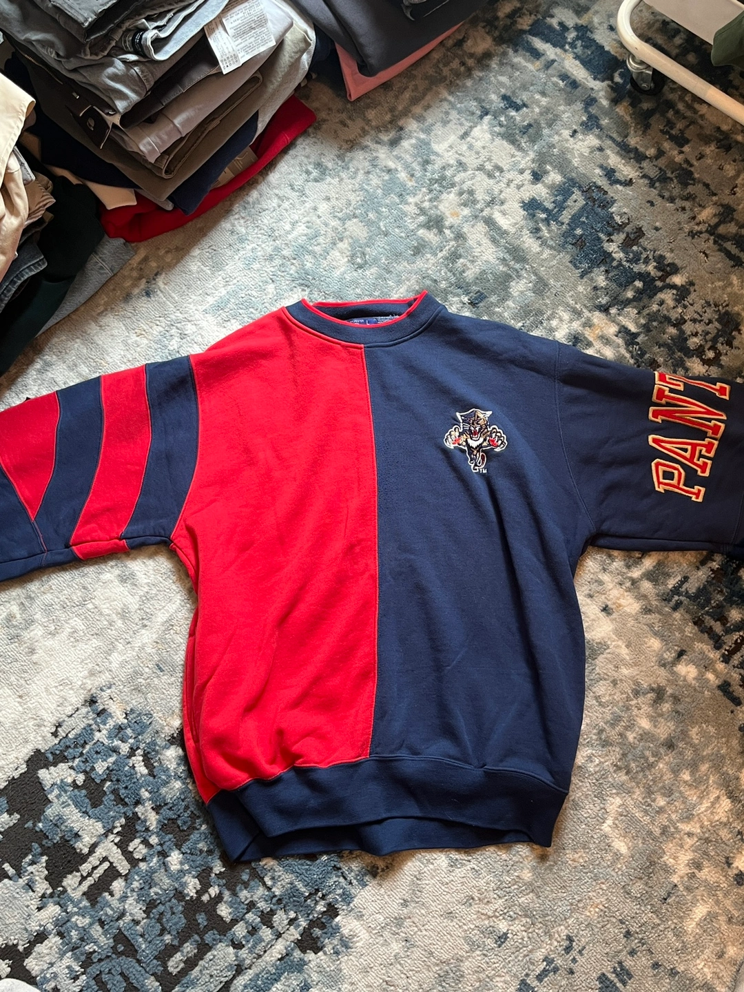 Vintage Florida Panthers Starter sweatshirt with a red and blue colour block design and a panther logo on the front. Panthers script on one arm and NHL logo on the other arm Pick up only near Main St & Kingston Rd (apartment). If you’re interested, let me know what day and time you can come. Please don’t ask if it’s available — if the listing is up, it’s still available.