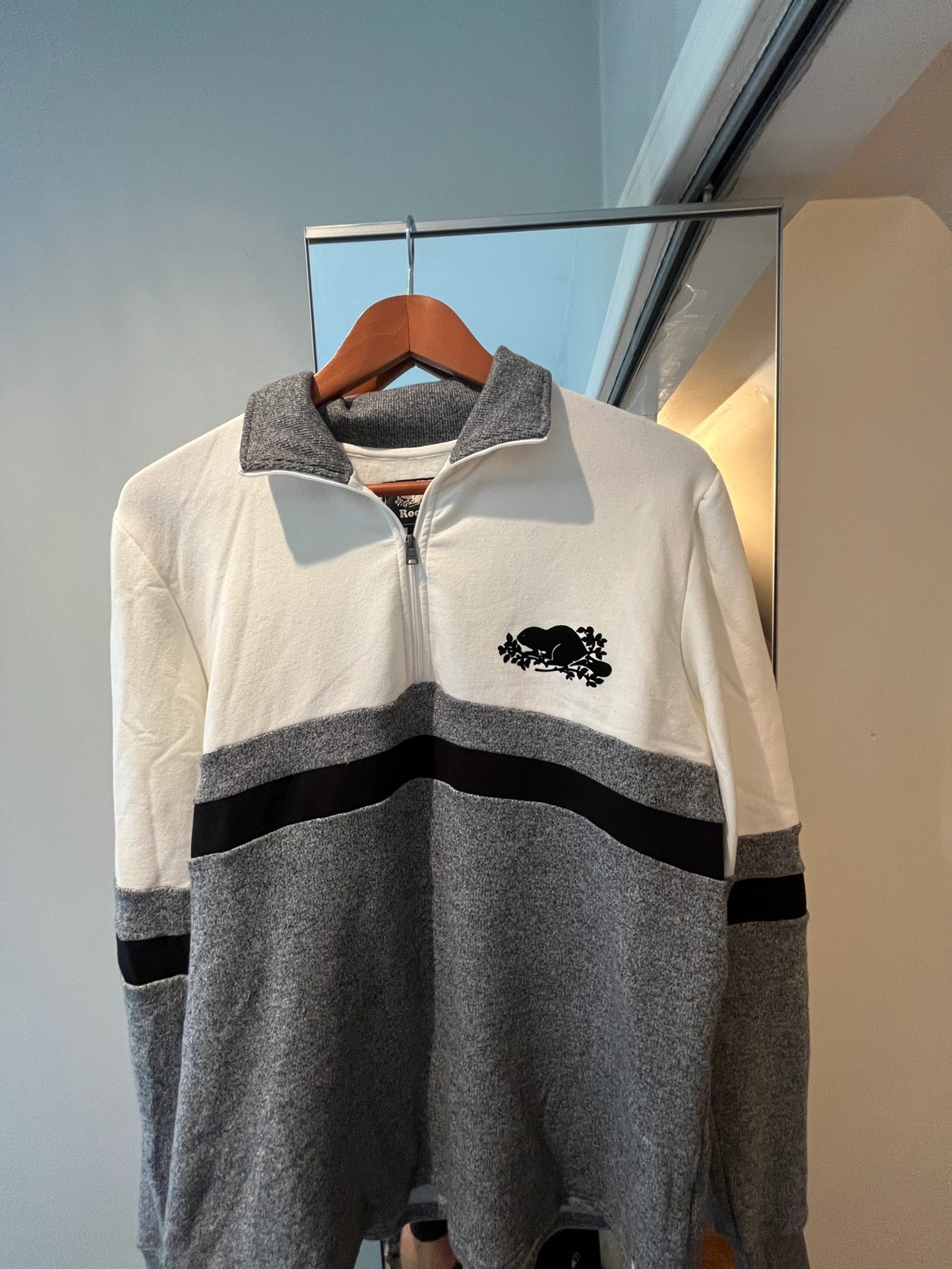Size Large - White, grey and black colours with the Roots beaver logo. 1/4 zip. Pick up only near Main St & Kingston Rd (apartment). If you’re interested, let me know what day and time you can come. Please don’t ask if it’s available — if the listing is up, it’s still available.