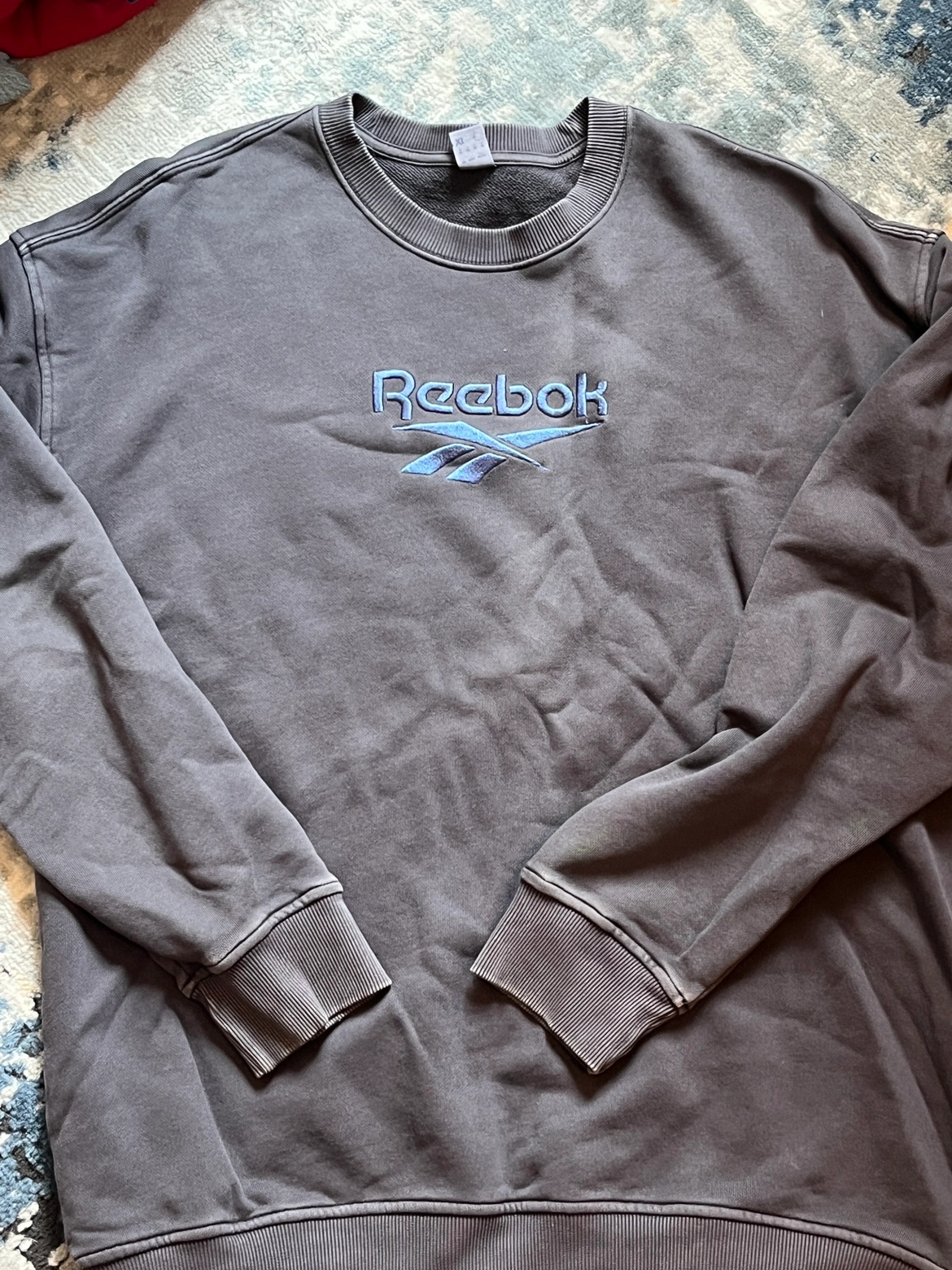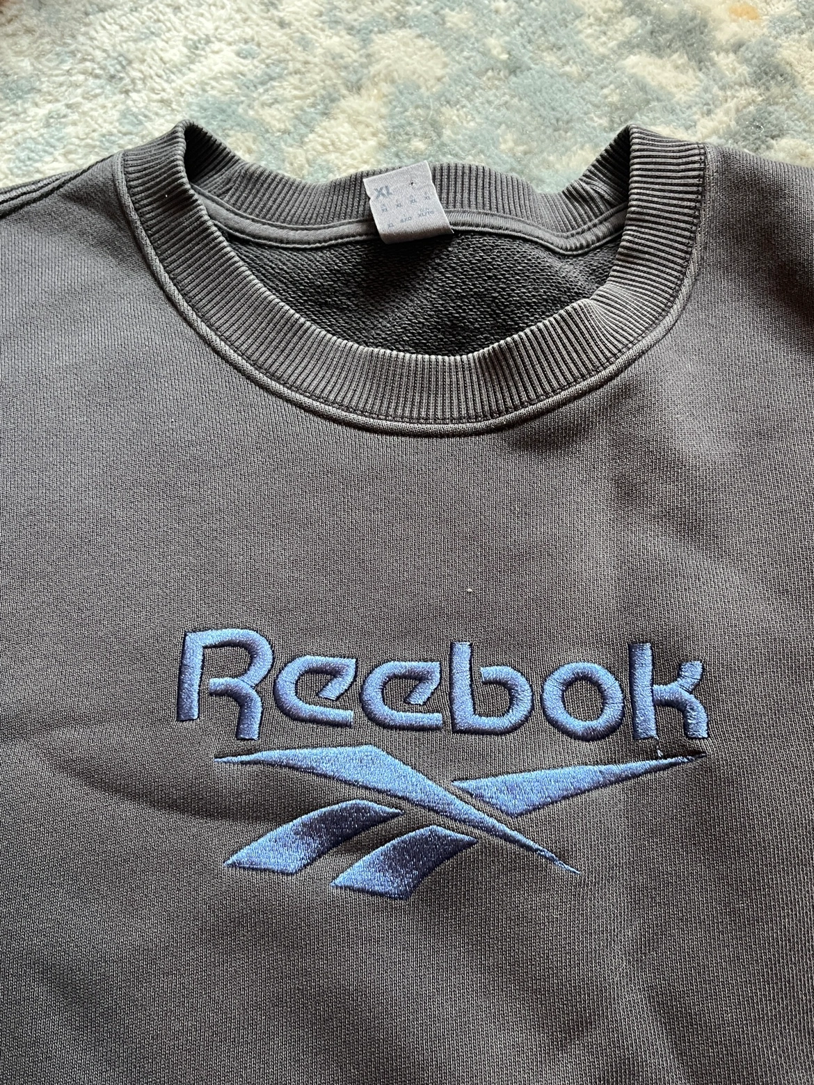 Grey Reebok sweatshirt with a blue embroidered logo. Size XL Pick up only near Main St & Kingston Rd (apartment). If you’re interested, let me know what day and time you can come. Please don’t ask if it’s available — if the listing is up, it’s still available.