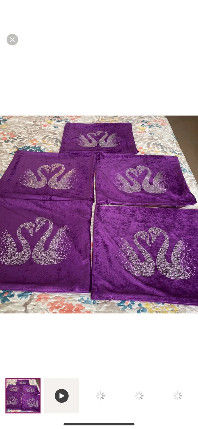 A set of 4 purple velvet pillow covers with a crystal swan design. They are a great way to add some glam to your home decor.