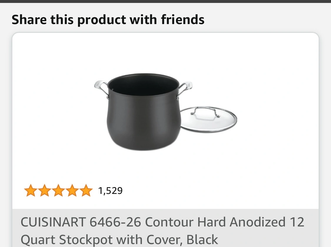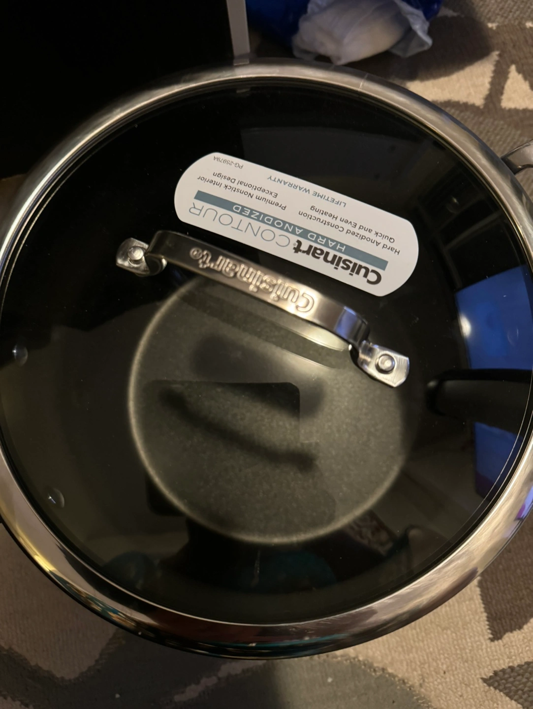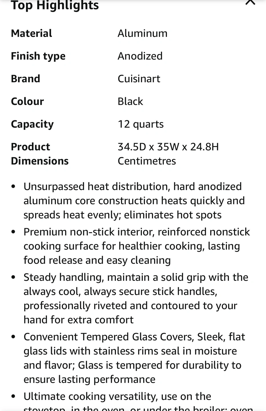 Cuisinart 12 Quart Stockpot, Black Cuisinart 6466-26 Contour Hard Anodized 12-Quart Stockpot with Cover Description: Cuisinart Contour Hard Anodized Cookware is premium cookware that features the finest materials, constructed for unsurpassed durability and performance. Beautifully and functionally designed, the elegant styling and a robust silhouette make for a professional look. Maximize the volume and cook with added flair with this unique cookware! Hard anodized aluminum core construction heats quickly and spreads heat evenly. Eliminates hot spots Reinforced nonstick cooking surface for healthier cooking, lasting food release and easy cleaning. Sleek, flat glass lids with stainless rims seal in moisture and flavor Glass is tempered for durability to ensure lasting performance. Tapered rims keep pouring drip-free and easy Use on the stovetop, in the oven, or under the broiler Oven safe up to 500°F and freezer safe for easy food storage. Original price $190+tax Never used