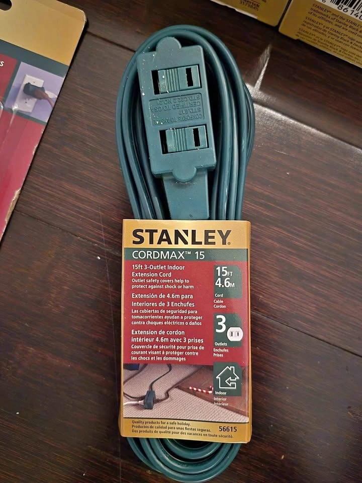 Brand New Stanley 15ft 3 Outlet Indoor Extension Cord