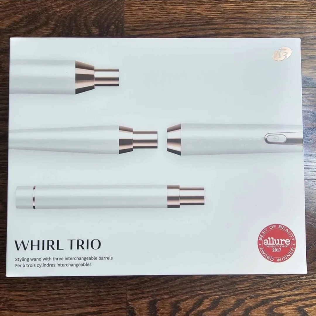 Selling a T3 Whirl Trio styling wand. It comes with three interchangeable barrels for creating different types of curls and waves.