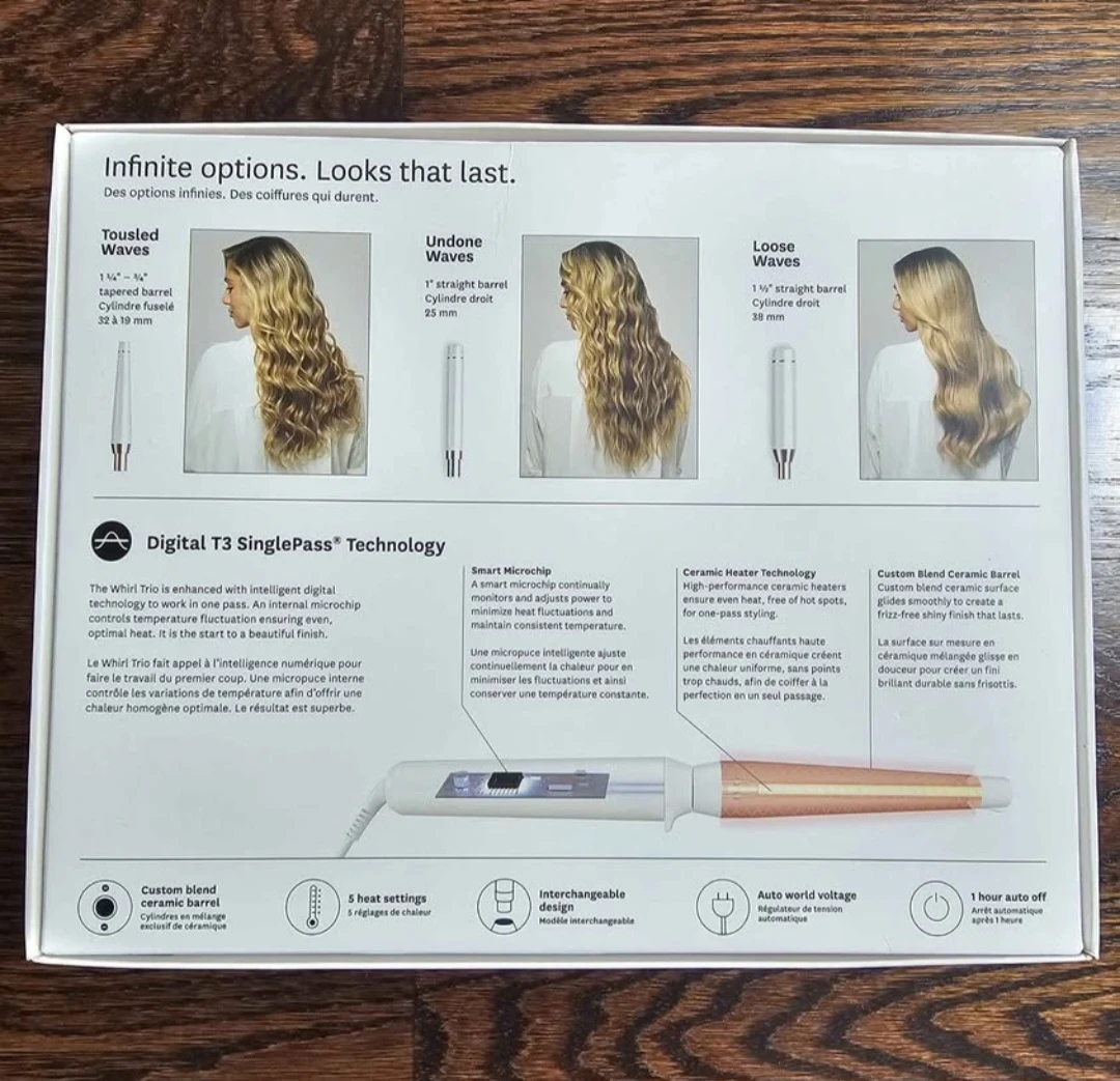 Selling a T3 Whirl Trio styling wand. It comes with three interchangeable barrels for creating different types of curls and waves.