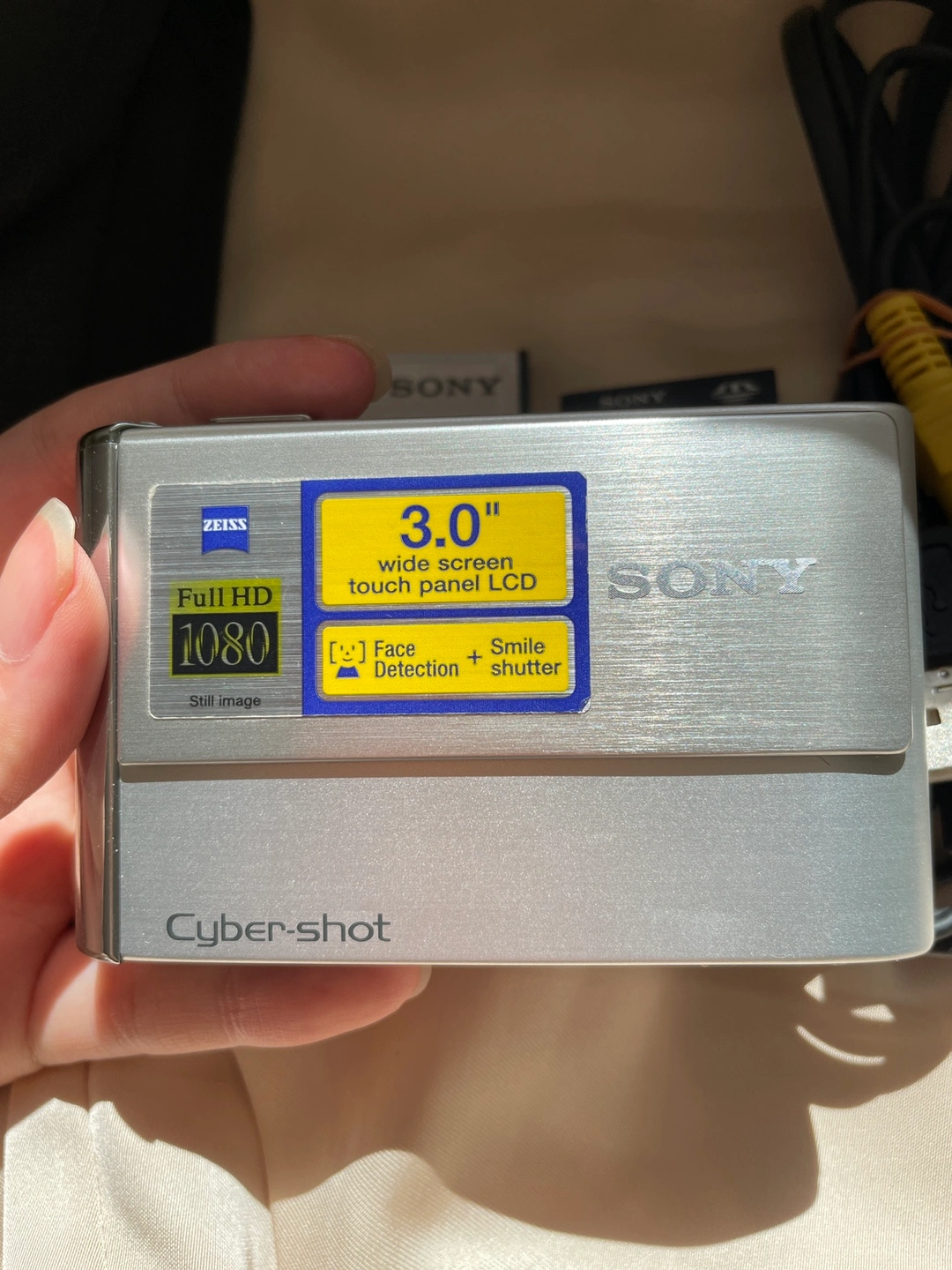 Trying to rehome one of my fav cameras! edit: including the charger too i found it! :’) everything works well from flash to touchscreen, and there’s a protective film over the touchscreen (can be peeled off)