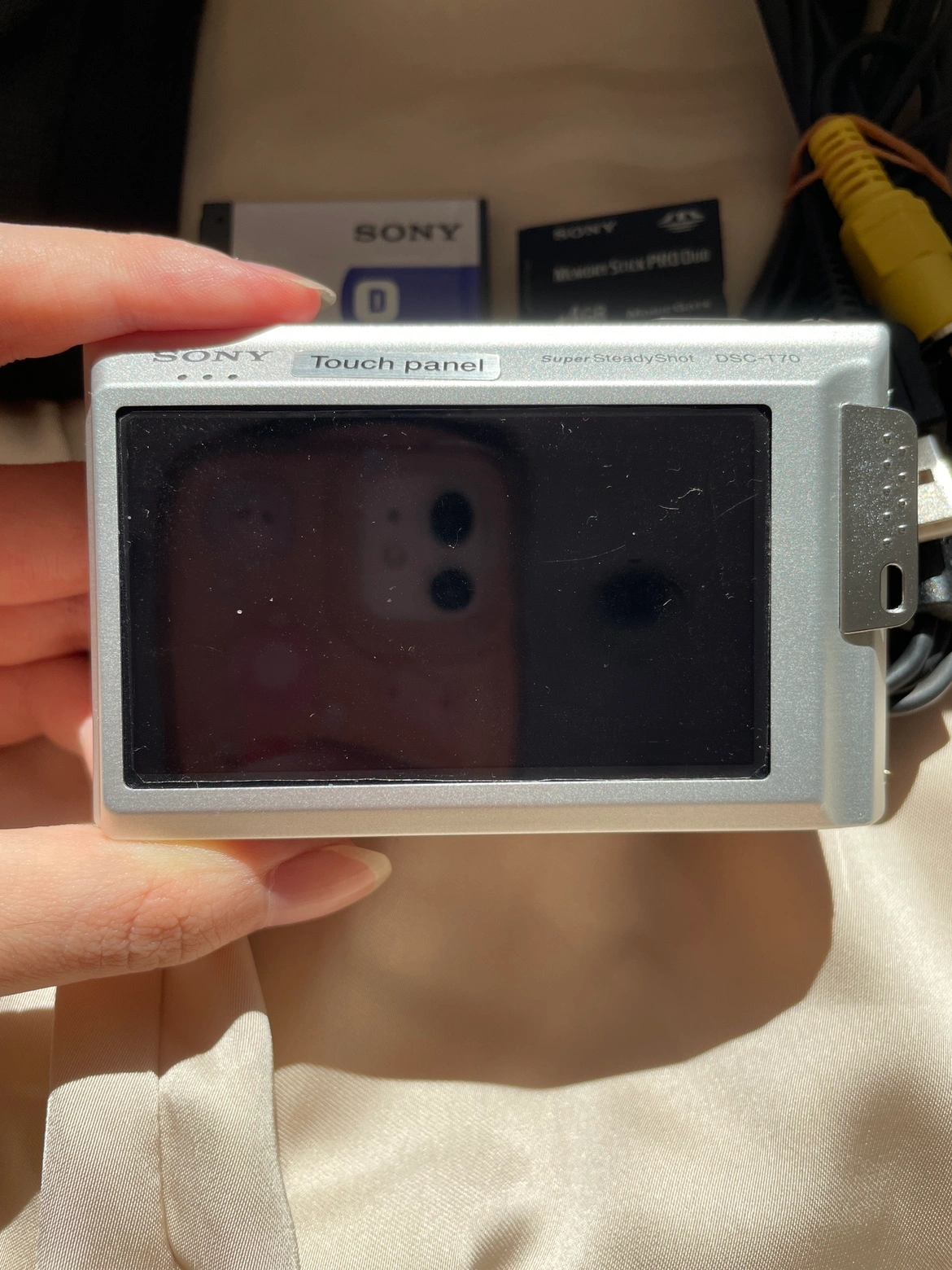 Trying to rehome one of my fav cameras! edit: including the charger too i found it! :’) everything works well from flash to touchscreen, and there’s a protective film over the touchscreen (can be peeled off)