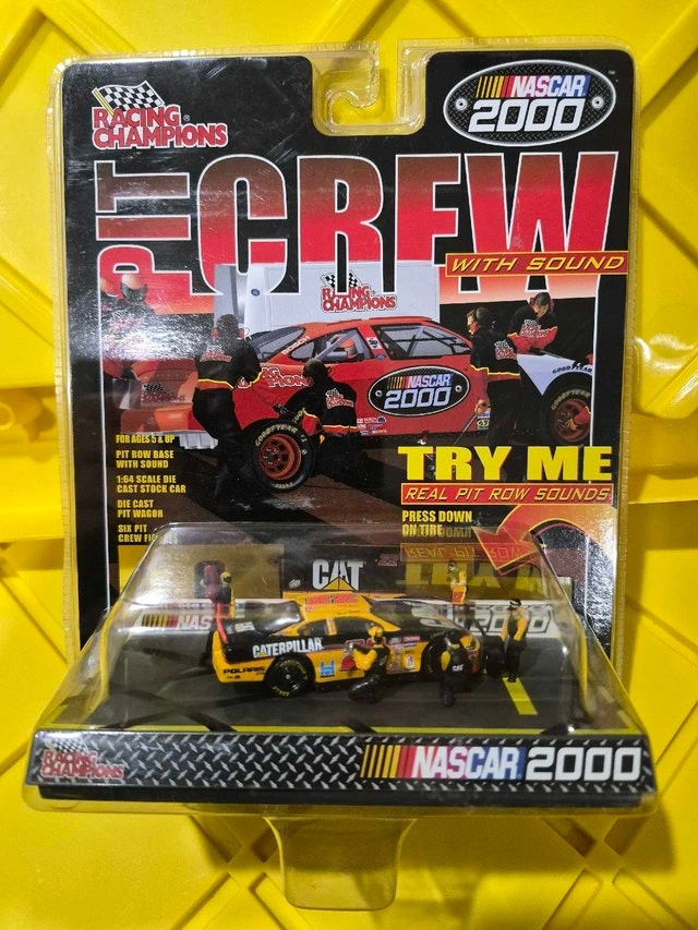 This is a Racing Champions NASCAR 2000 #22 Pit Crew diecast set, complete with pit row base and sound effects. It's a 1:64 scale die-cast stock car with a die-cast pit wagon and six pit crew figures. This set is in used condition, so please review the photos carefully to assess its condition. Includes: Pit Row Base with Sound, 1:64 Scale Die Cast Stock Car, Die Cast Pit Wagon, Six Pit Crew Figures. Asking $25 for this collectible Racing Champions NASCAR set. If the ad is up, the item is available!