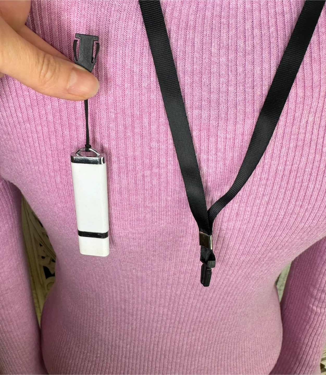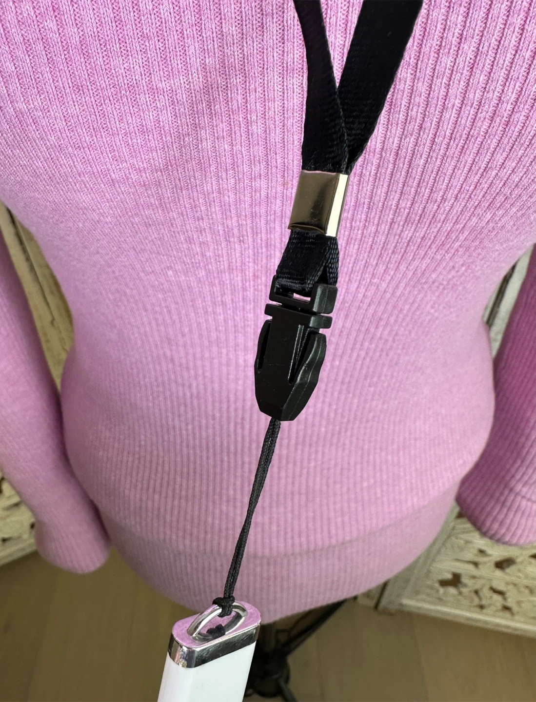 Made of satin woven nylon ribbon. Features a removable clip. Good for hanging keys, phone, camera, ID card or usb drives.