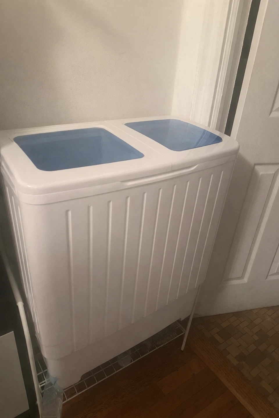 Giantex Portable Mini Compact Twin Tub Washing Machine 20lbs Washer Spain Spinner Portable Washing Machine, Blue+ White