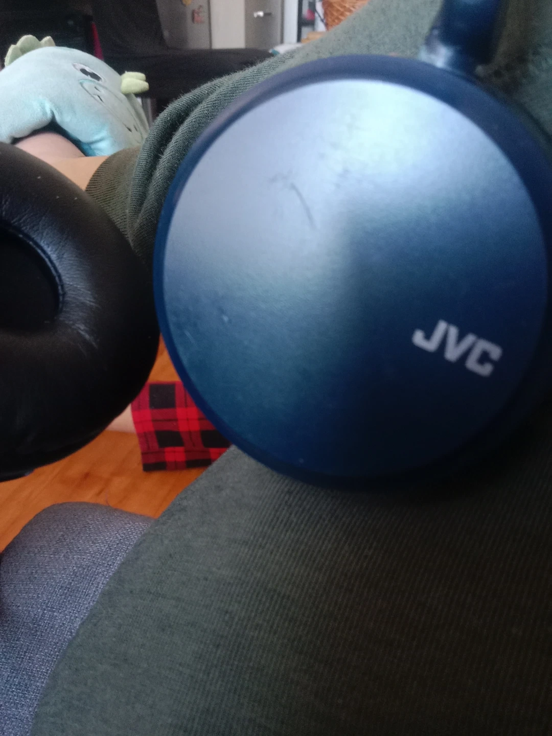 These JVC over-ear headphones are black and blue. They're comfortable for extended listening. These headphones offer good sound quality for everyday use.