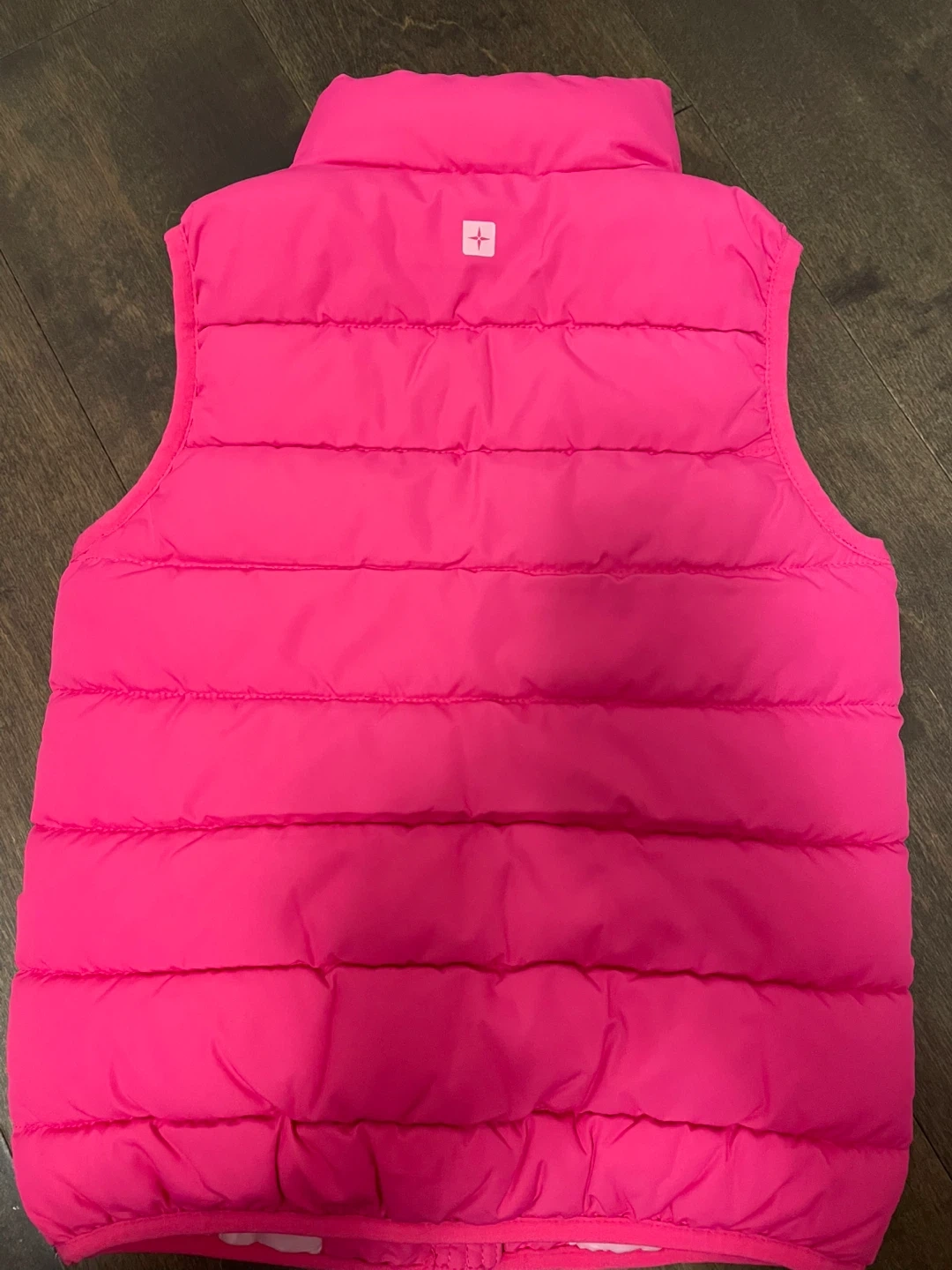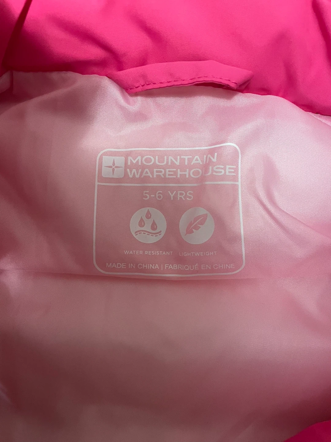 This bright pink puffer vest is from Mountain Warehouse. It's water-resistant and lightweight. Recommended for ages 5-6 years.