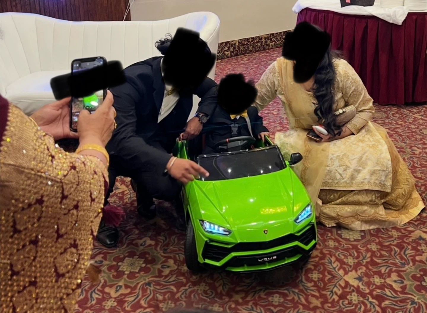 This is a vibrant green electric ride-on toy car for kids. It features a realistic design with working headlights and a steering wheel. It's a fun way for children to play and explore! Green Lamborghini kids car, perfect for just playing or for parties birthdays etc. price negotiable, ready for pick up asap immediately. brand new condition, used only once.