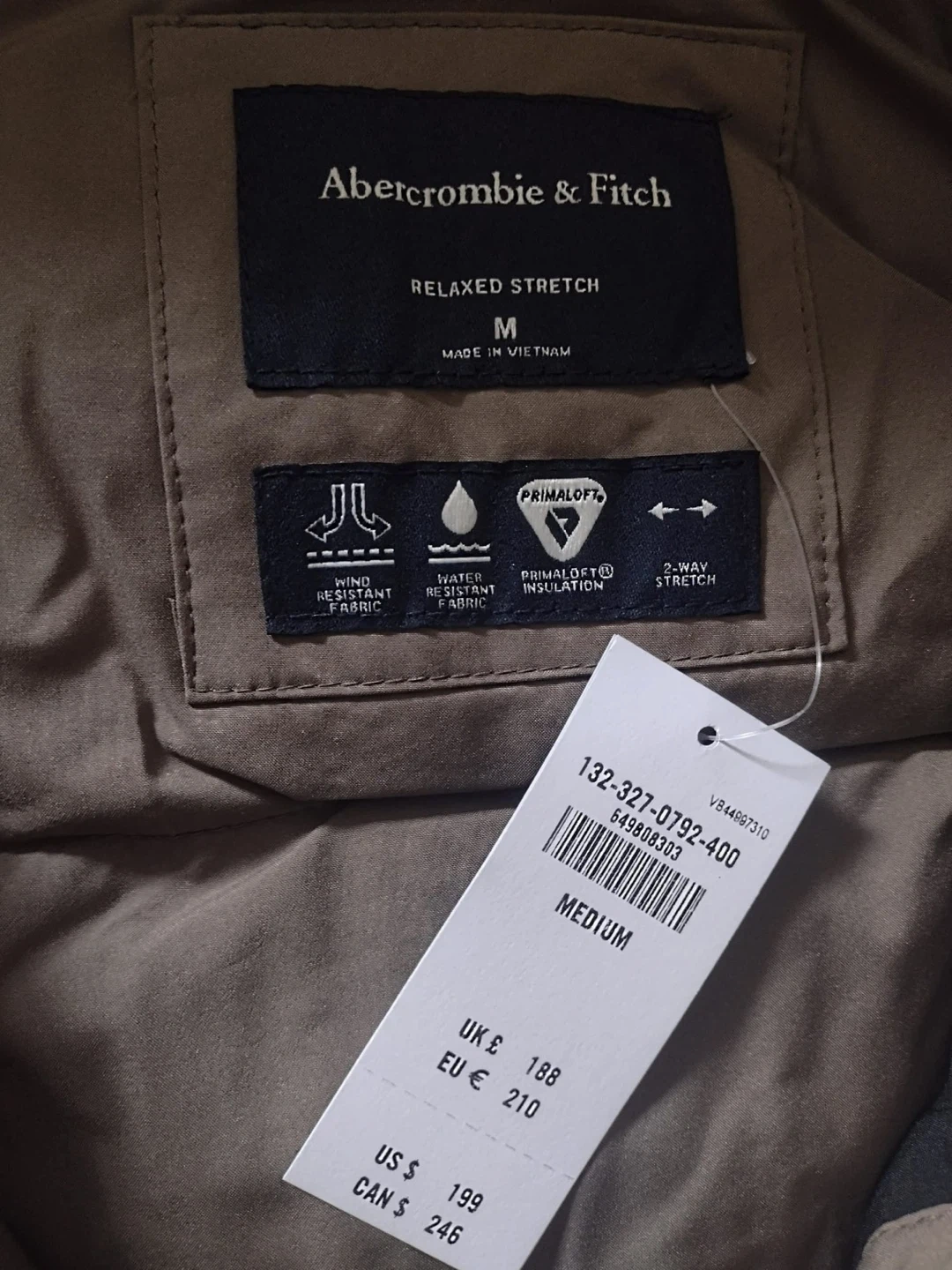 Brand new Abercrombie & Fitch jacket. It's a size medium and features Primaloft insulation. It's wind and water resistant too! Originally bought for $246 CAD.