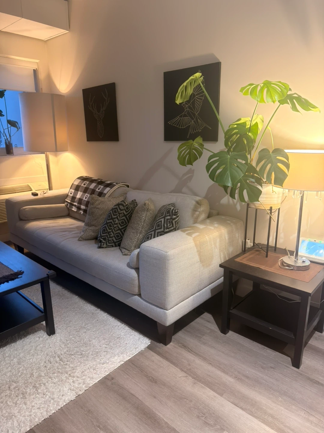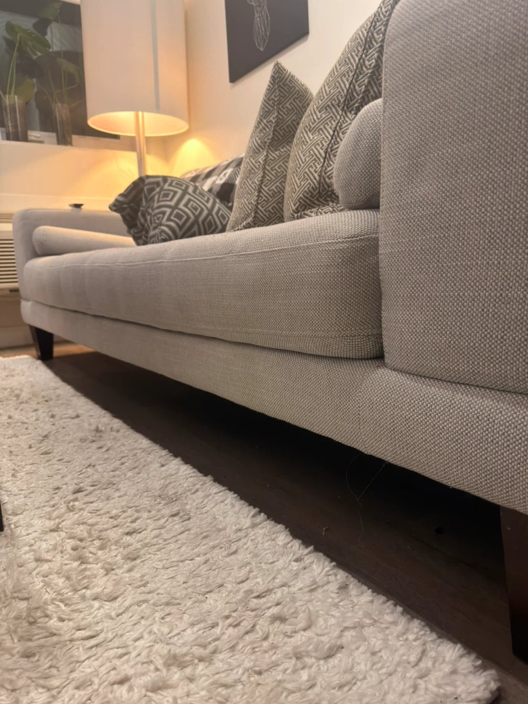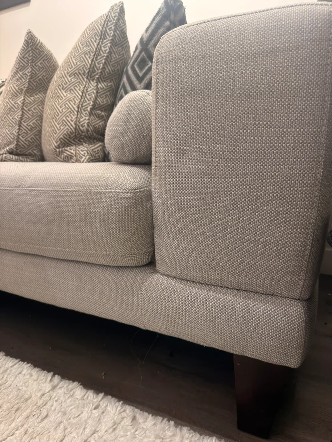 Grey Sofa with Decorative Pillows and Throw Blanket