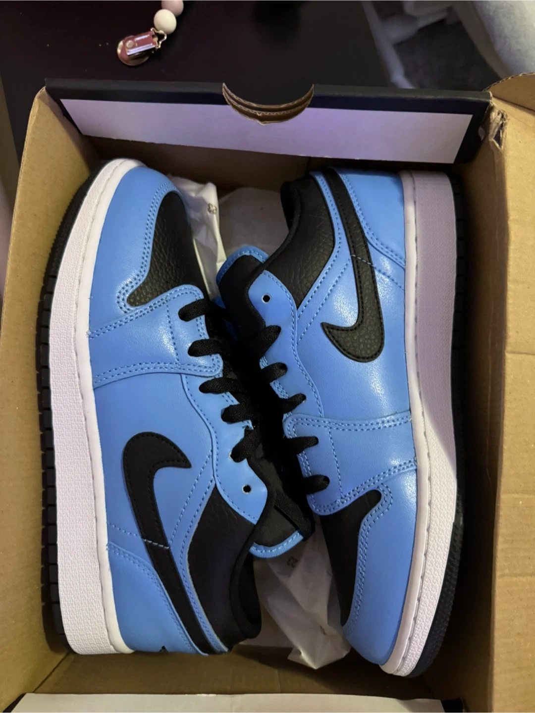 Selling a pair of Air Jordan 1 Low (GS) in the University Blue, Black, and White colourway! They are size 6.5Y (equivalent to UK 6, BR 37.5, and EUR 39). Comes with the original box never use