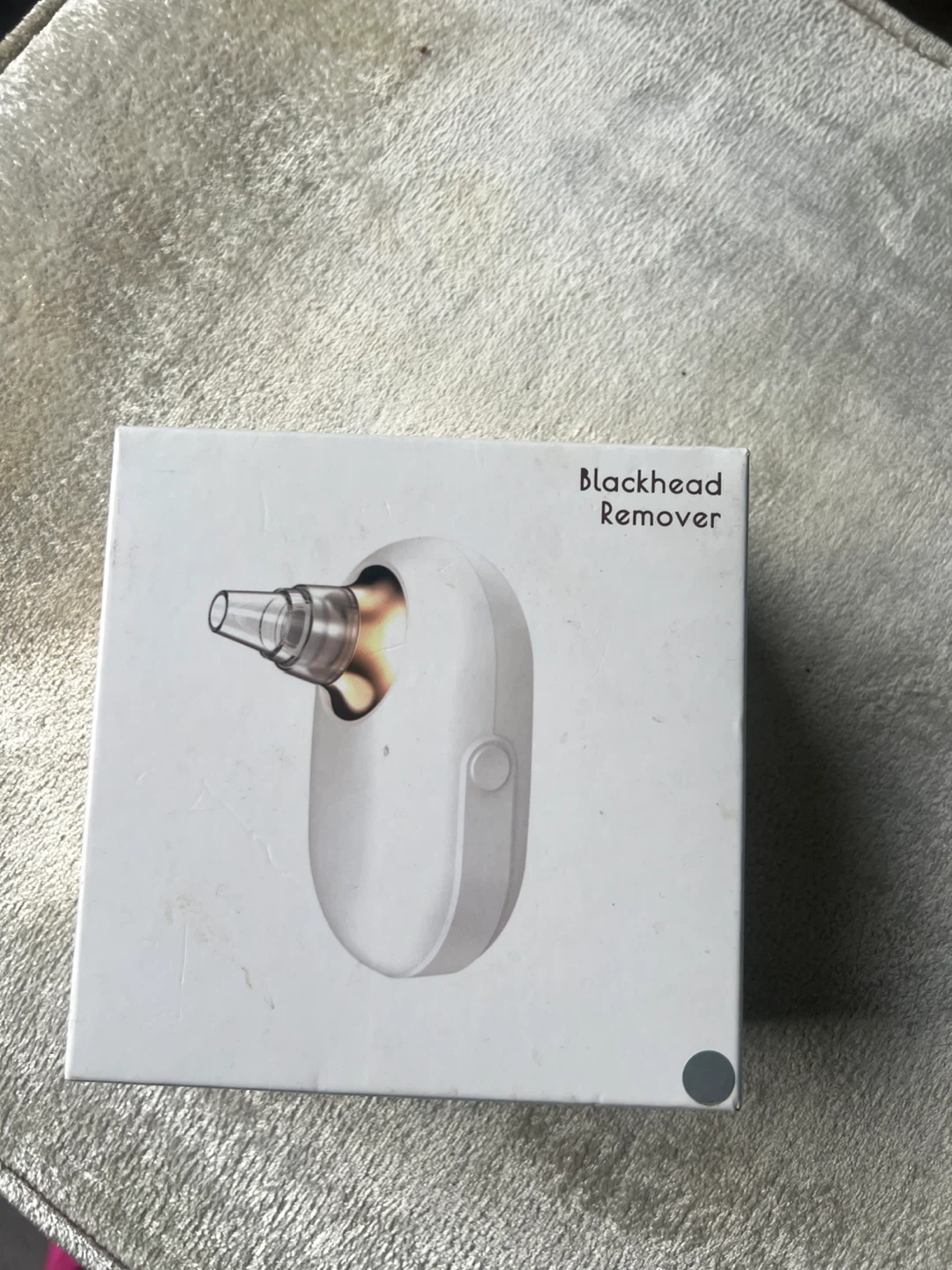 This is a blackhead remover tool with multiple suction heads. It comes with the device, charging cable, and various sized suction tips. It's designed for easy skin care.