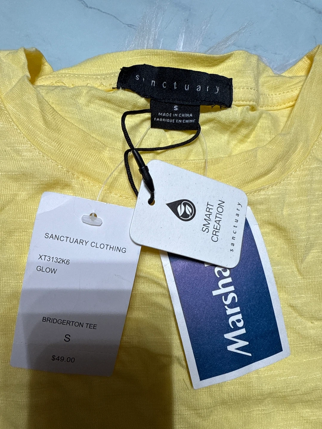 This is a new Sanctuary Bridgeton Tee in a lovely yellow color! It's a size small and originally cost $49.00. This tee is perfect for adding a pop of color to your wardrobe