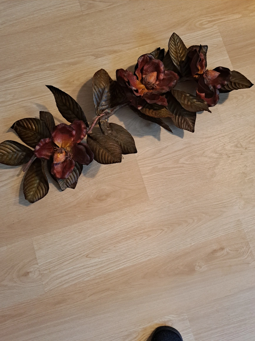 Beautiful burgundy and brown artificial magnolia garland. Perfect for home decor. Adds a touch of elegance to any room. Measures approximately 24 inches long.