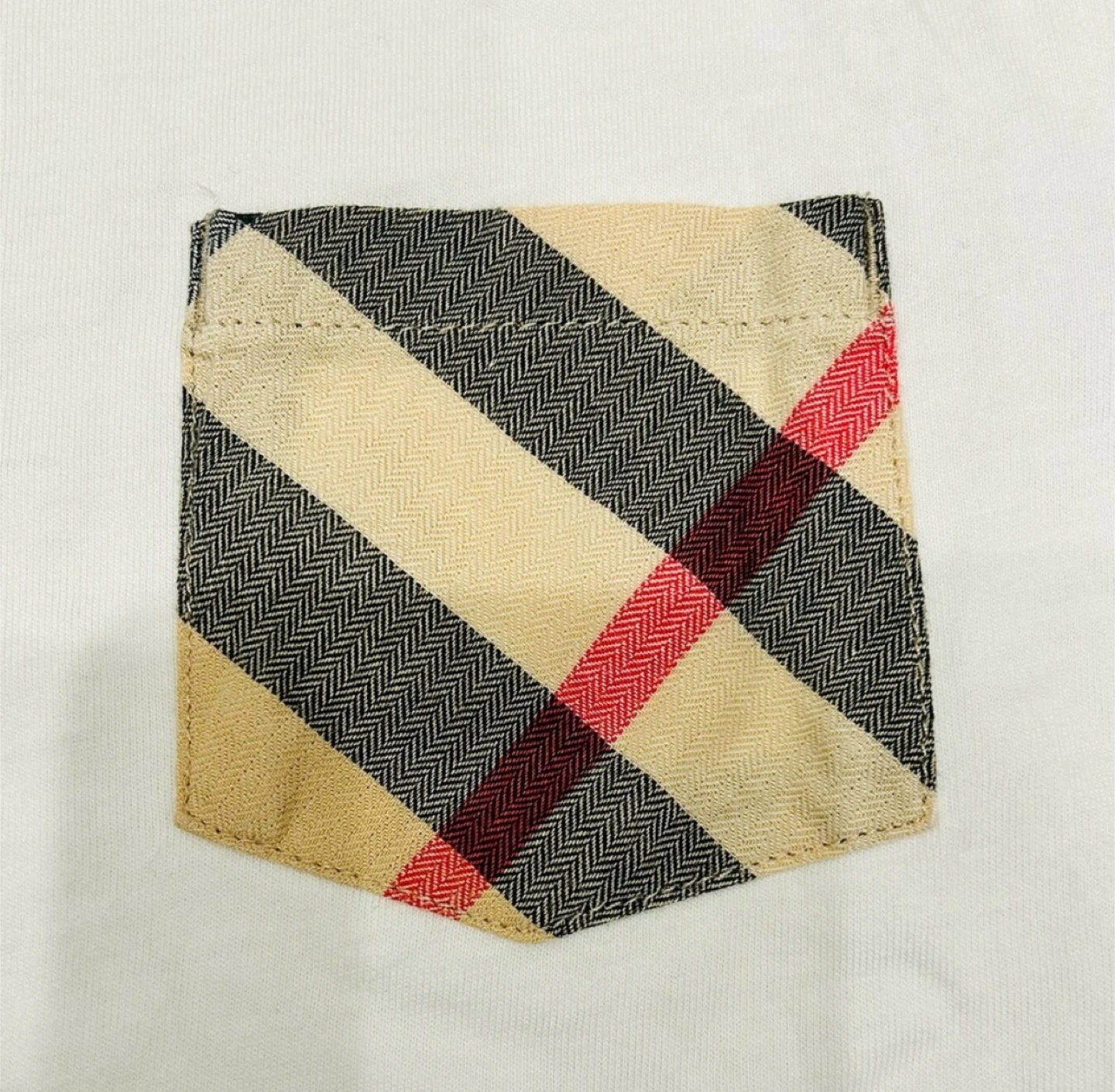 This is a Burberry Kids t-shirt in white. It's made from 100% cotton. The t-shirt features a classic Burberry check pattern on the chest pocket. Fits size 4Y or 104cm.
