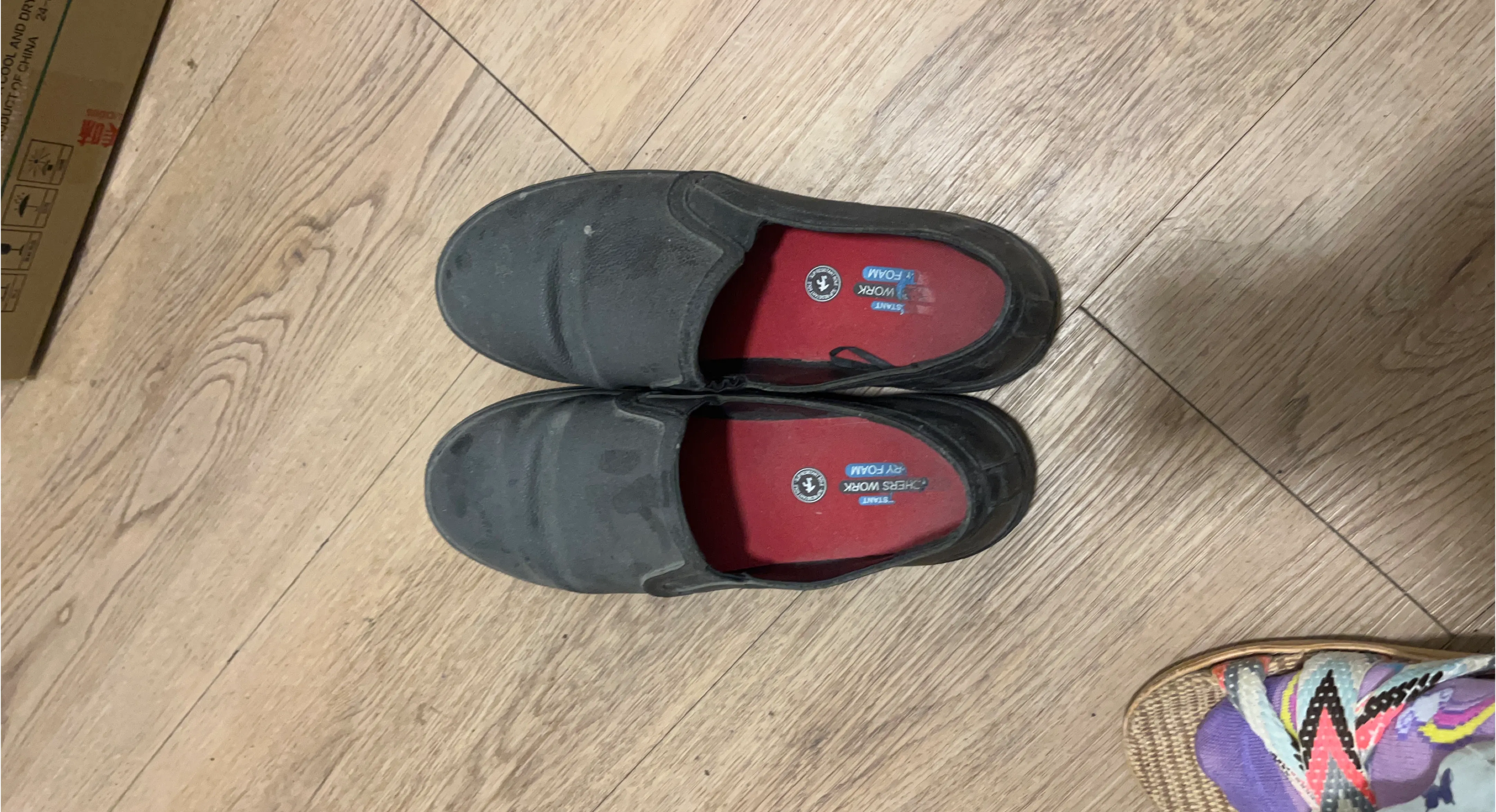 Selling a pair of Skechers Work slip-on shoes in black. They feature a memory foam insole for extra comfort while you're on your feet. Great for work or everyday wear!