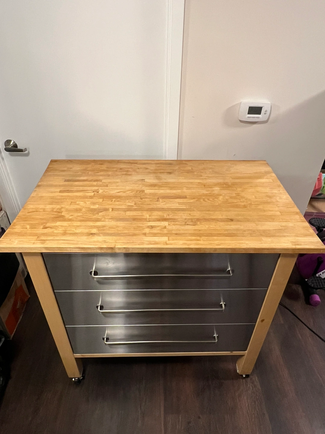 IKEA Stainless Steel 3 Drawer Kitchen Island on Casters,