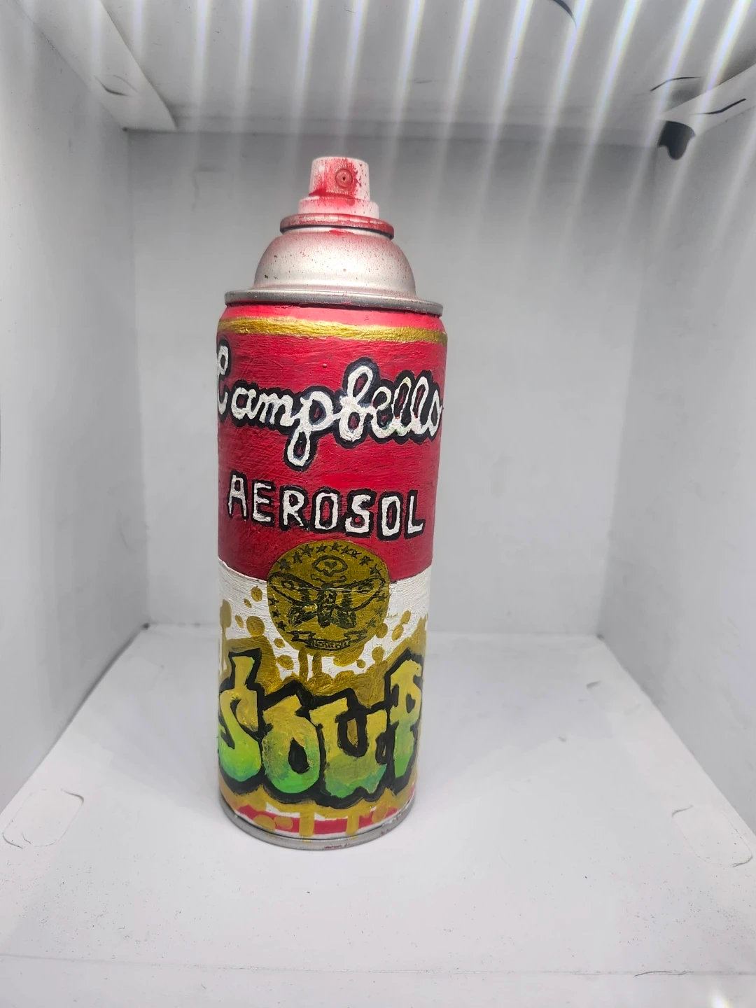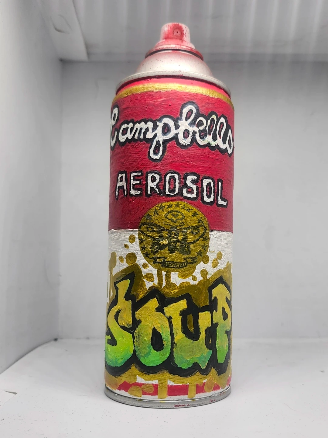 -inspired aerosol spray can, hand-painted with a cool, graffiti-style design. Perfect for adding a pop of colour and a bit of street art flair to your space