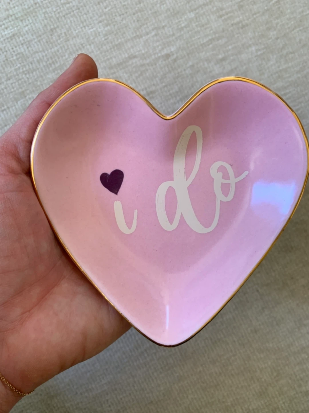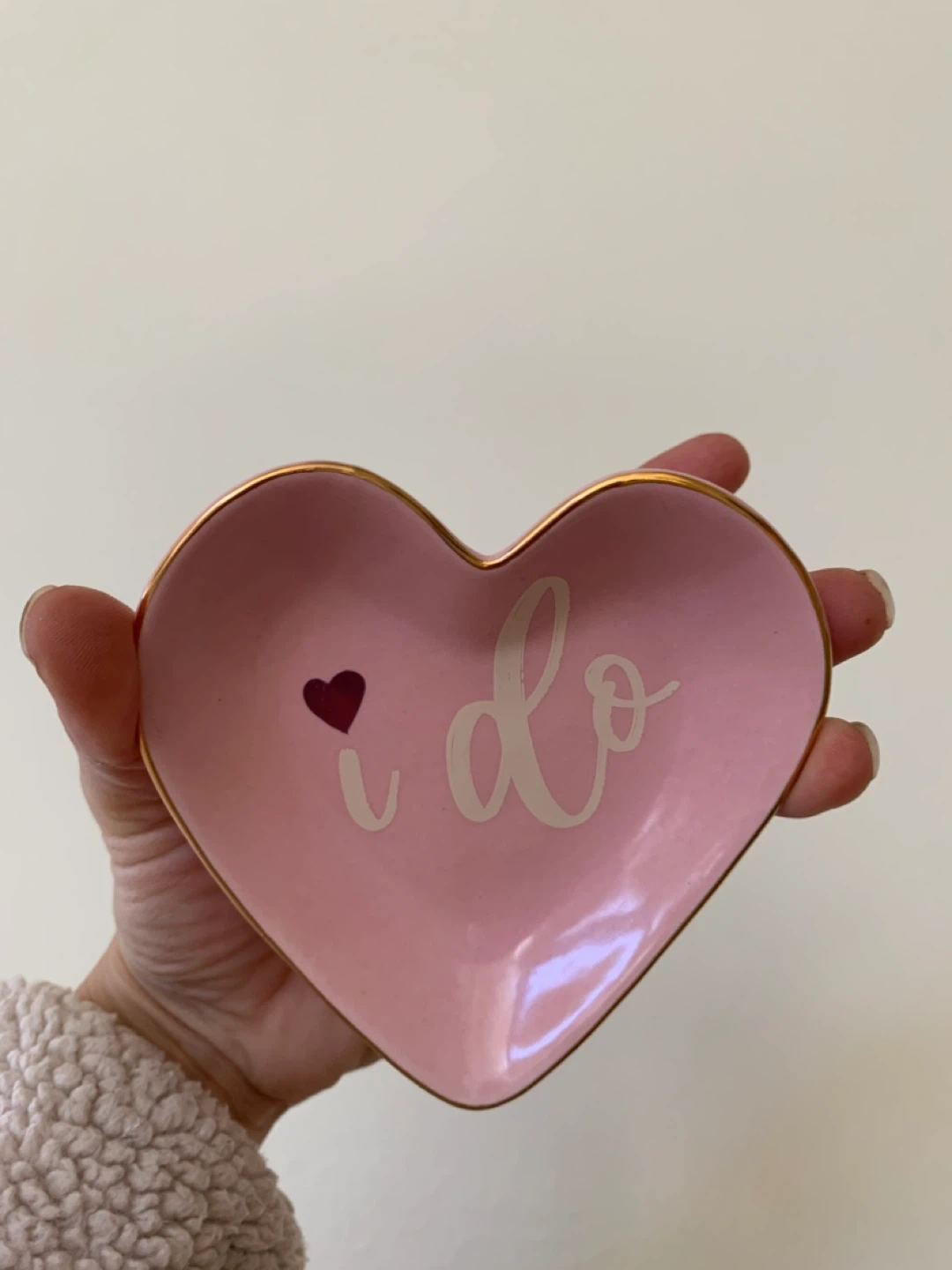 Buy & SellPink Heart "I Do" Ring DishPink Heart "I Do" Ring Dish$1Cute pink heart-shaped dish with "I Do" text. It's perfect for holding rings or small trinkets. Ceramic material with a gold rim.WHERE TO MEETCheck LocationView MapSELLERAdreaRegent Park888 reviews0 chats·1 favorites·5 viewsSEND CHAT TO SELLERHi Adrea! I’m interested in your listing.Hi Adrea! I’m interested in your listing.Get the Karrot app to chatSign In to chat