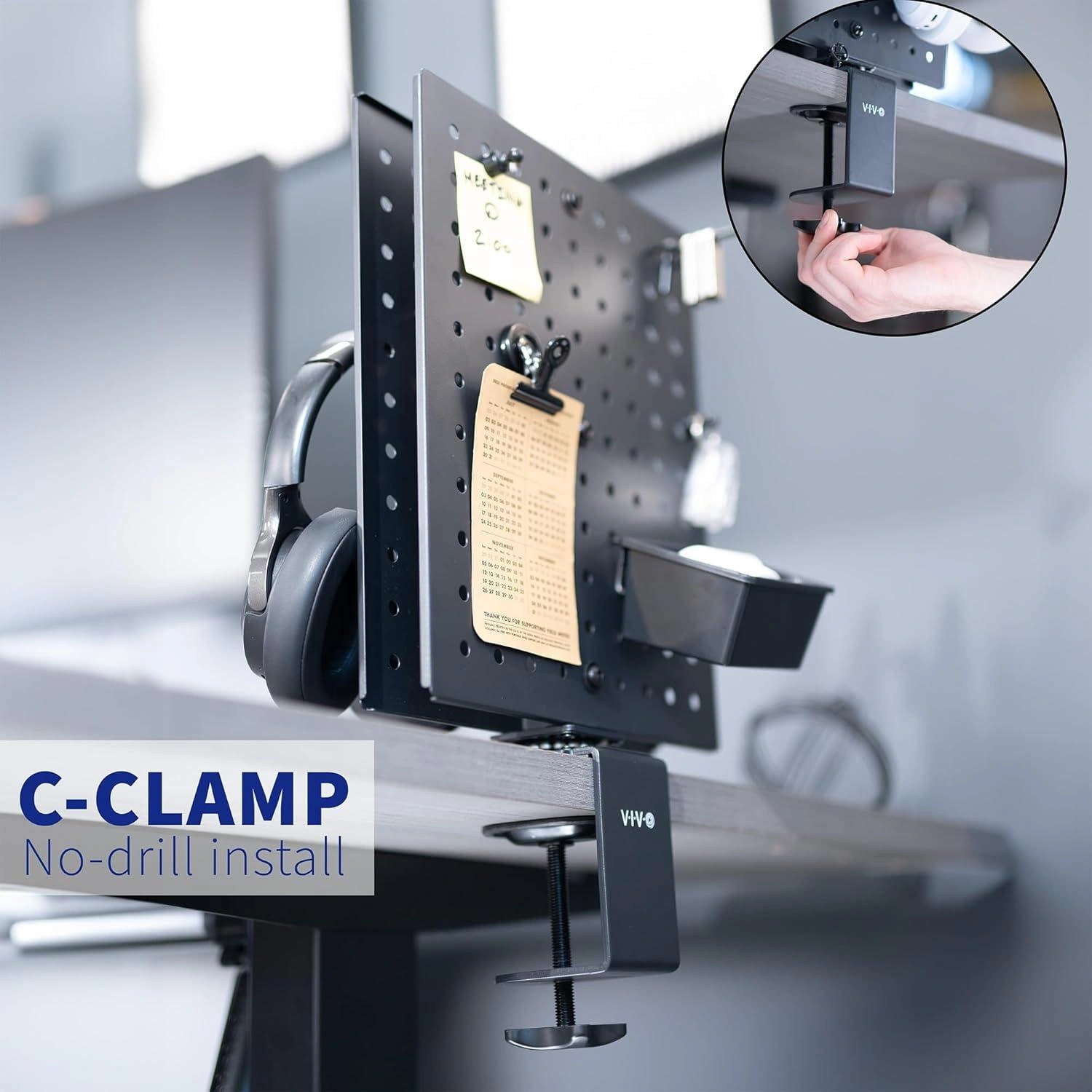 Declutter your workspace with this handy VIVO desk organizer! It features a double-sided pegboard with 90° locking rotation and a c-clamp for easy, no-drill installation. Perfect for keeping your essentials within reach and your desk tidy