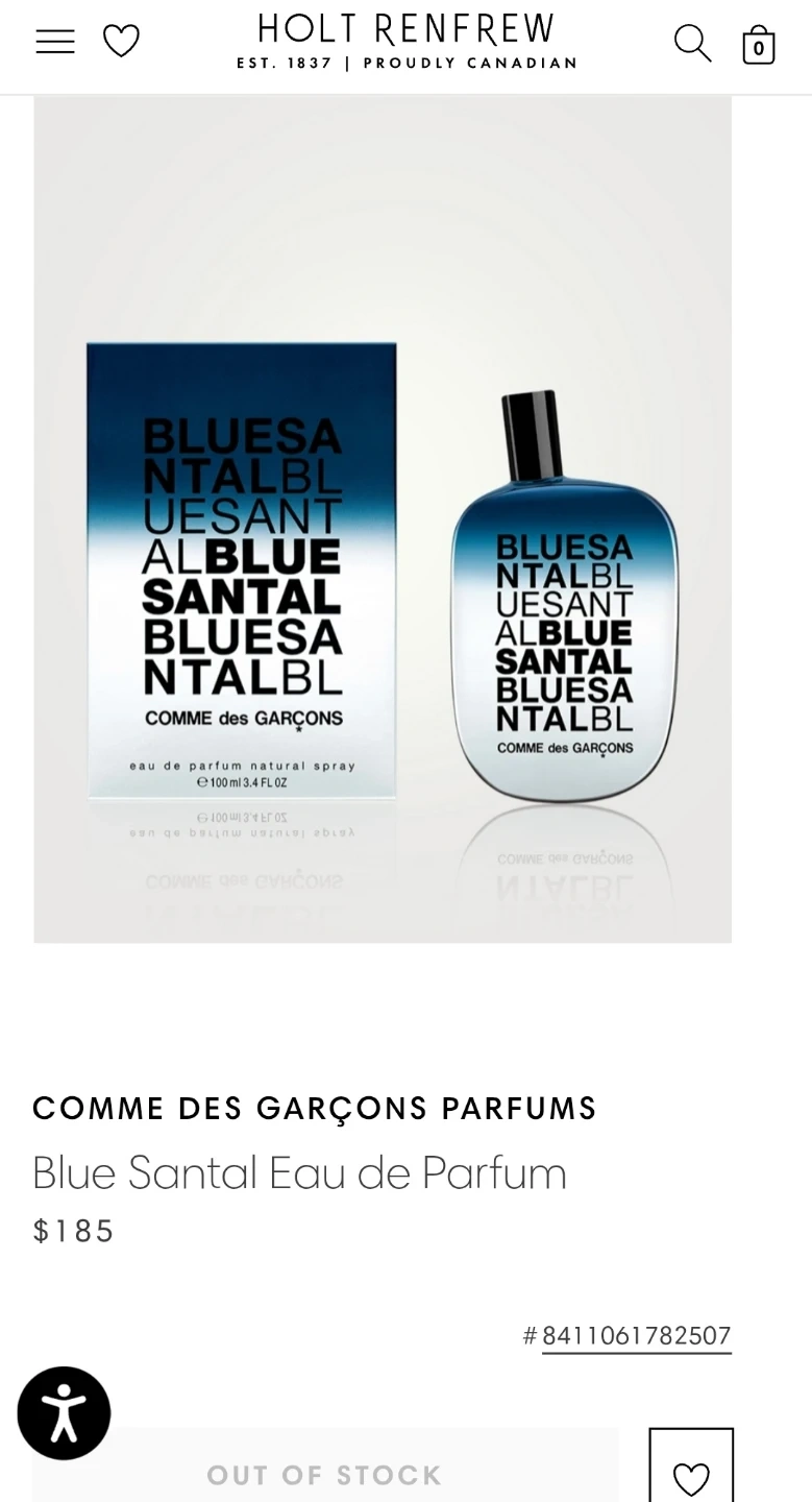 Comme des Garçons Blue Santal Eau de Parfum. 100 ml. Made in Spain. A woody fragrance.