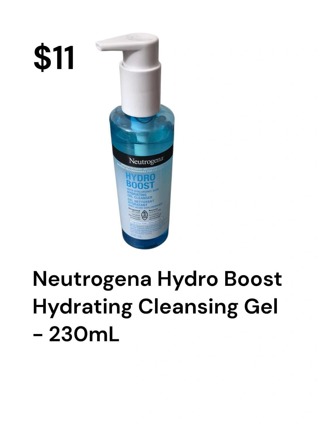 Neutrogena Hydro Boost Hydrating Cleansing Gel with hyaluronic acid. This gel cleanser is 230mL. It's fragrance-free and suitable for daily use.
