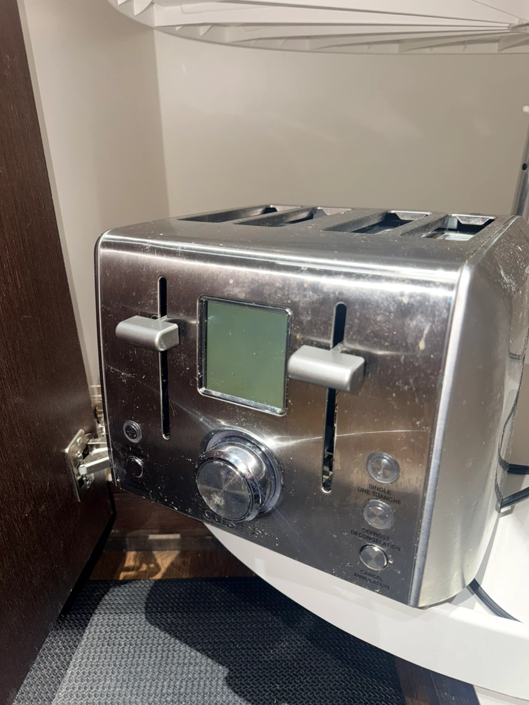 This is a Cuisinart 4-slice toaster with a brushed stainless steel finish. It has dual controls for independent toasting on each side. Multiple browning settings and cancel functions are available.