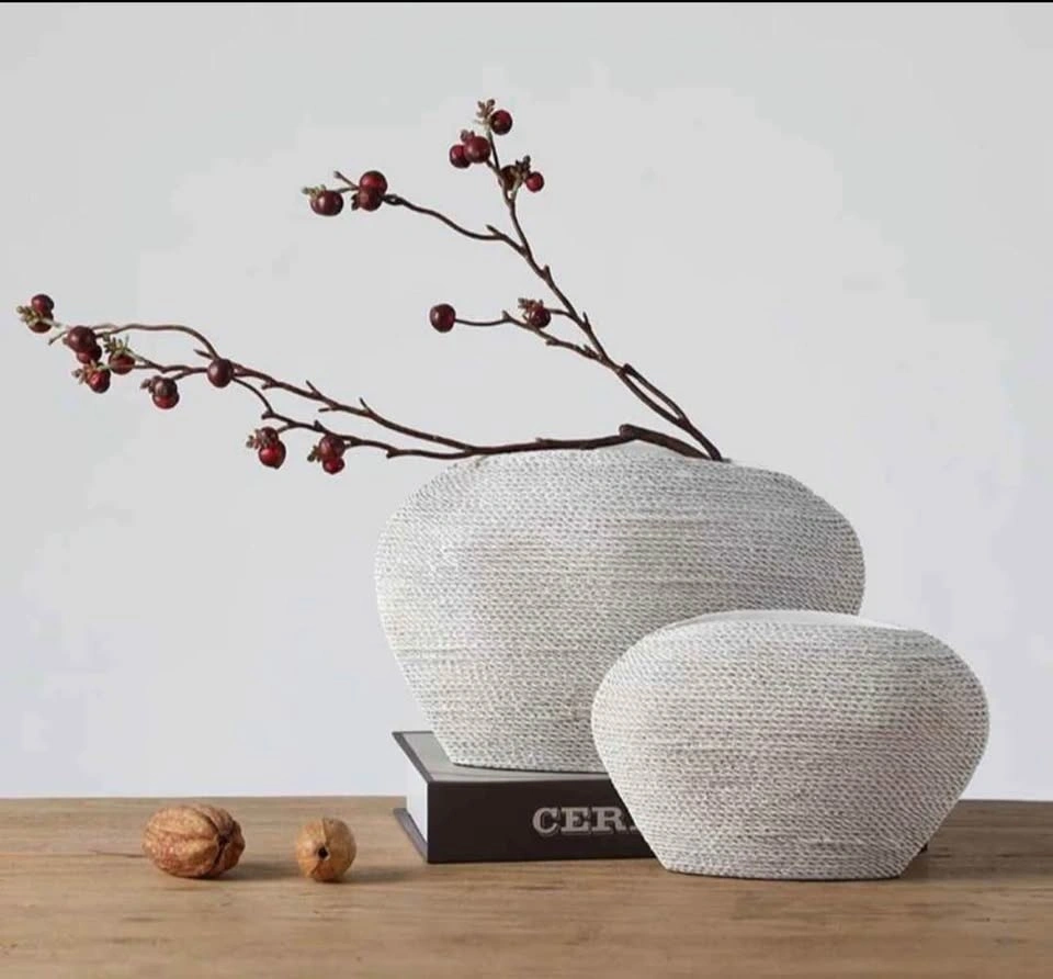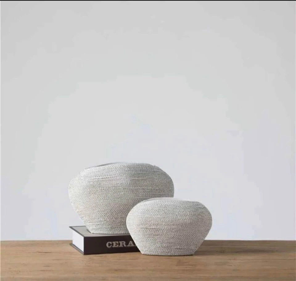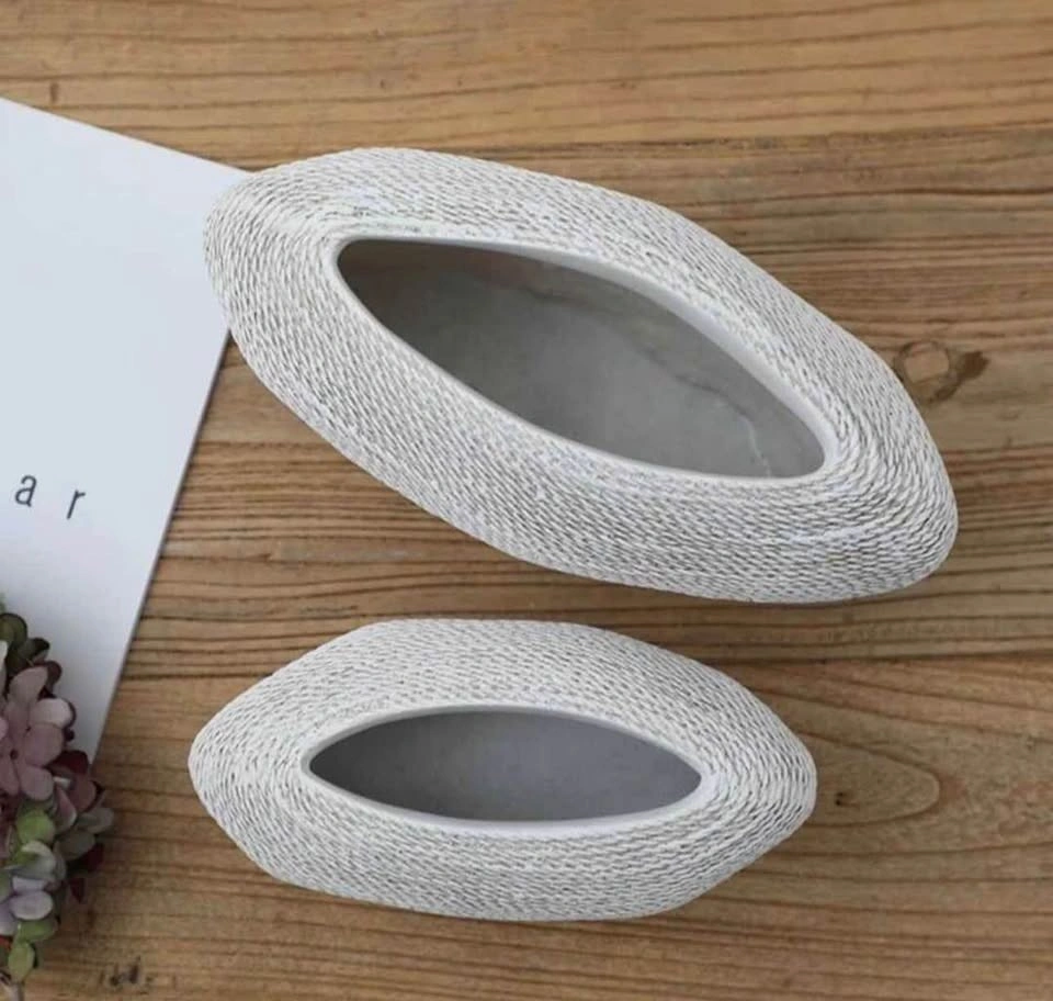 Set of two brand new white vases, made of poly resin. Carton dimensions: 30.5 x 27 x 22.5 cm. Weight: 2.35 KG. Feel free to message if you have any questions!