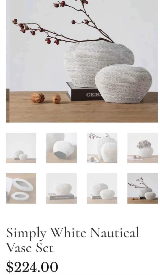 Set of two brand new white vases, made of poly resin. Carton dimensions: 30.5 x 27 x 22.5 cm. Weight: 2.35 KG. Feel free to message if you have any questions!