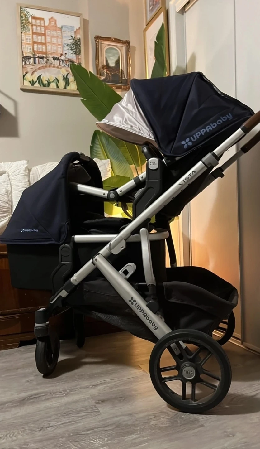 This UPPAbaby Vista stroller is a great choice for getting around with your little one. It features a reversible toddler seat and a bassinet, making it versatile for different ages. The stroller also comes with a car seat adapter for added convenience. It offers UPF 50+ protection from the sun.