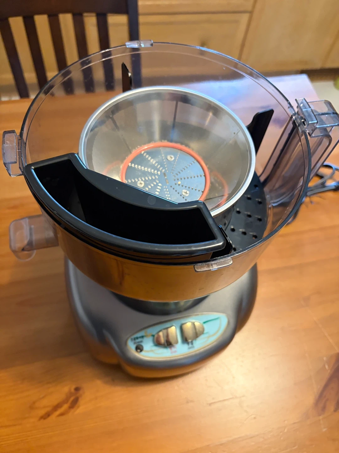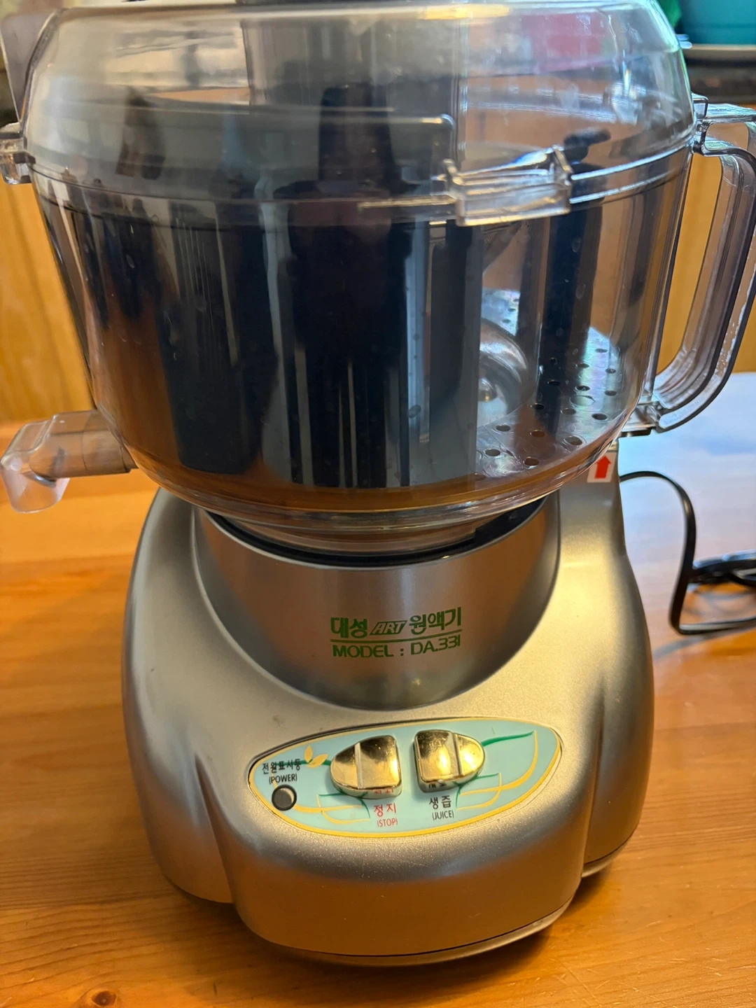 This is a Daesung ART juicer, model DA-331. It's silver and comes with its attachments. Great for making fresh juice at home!