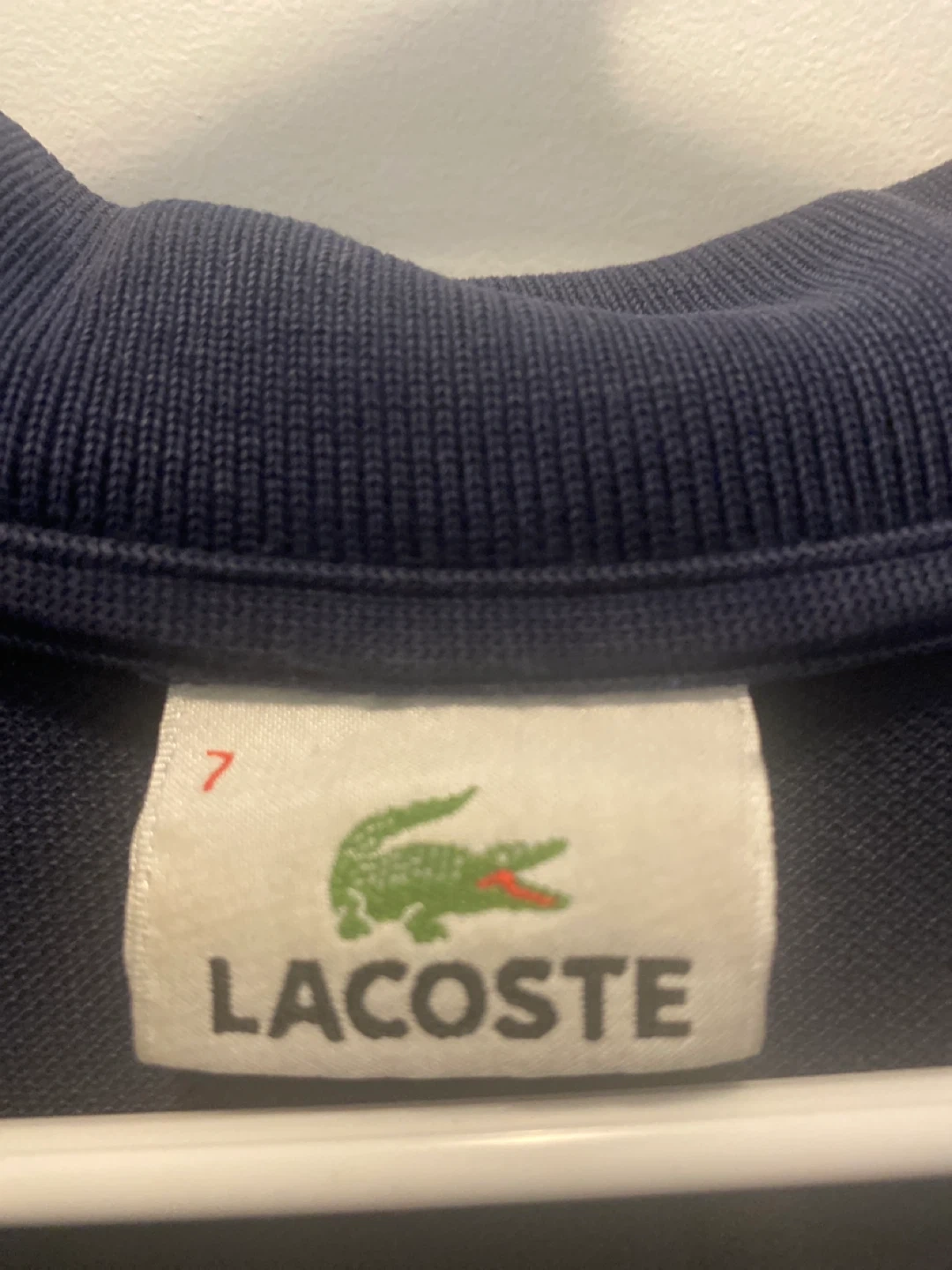 Classic Lacoste polo shirt in a dark blue color! It's a size 7, which is roughly equivalent to a large. In good condition and ready for a new home