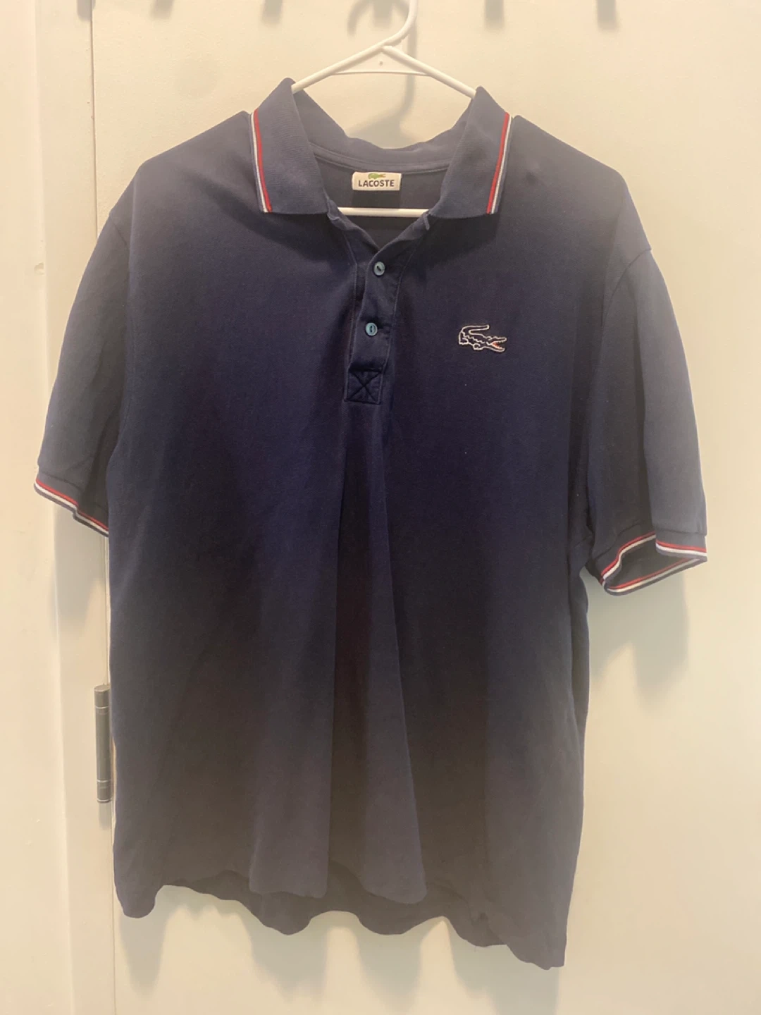 Classic Lacoste polo shirt in a dark blue color! It's a size 7, which is roughly equivalent to a large. In good condition and ready for a new home
