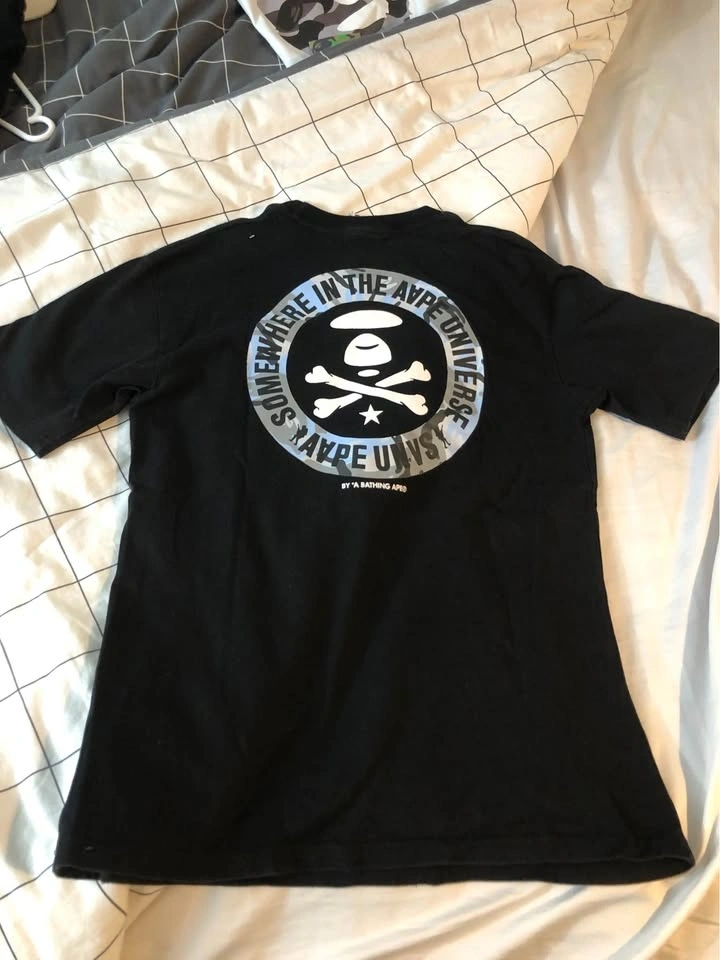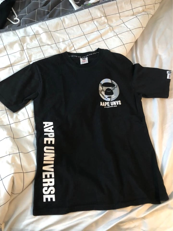 This is an authentic Aape Bape t-shirt. It's a large but can also fit a medium. It comes with the original bag. I've only washed it 2 times and barely worn it.