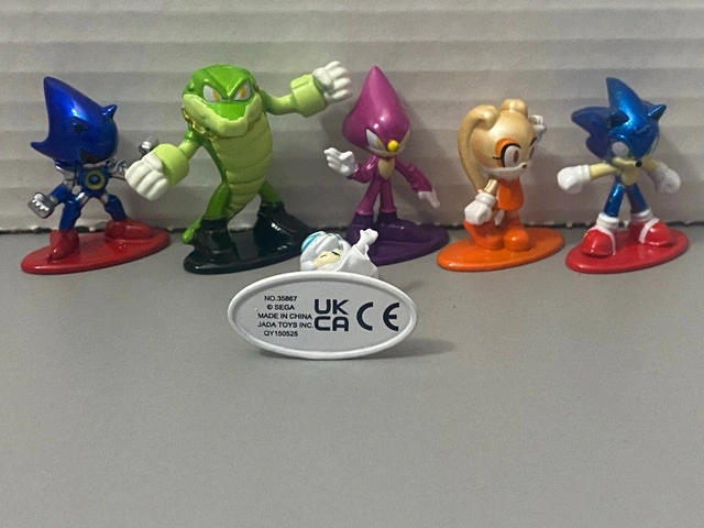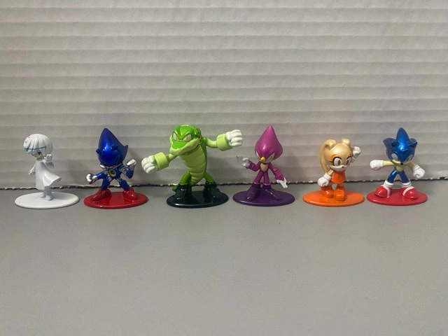 Selling a set of six Jada Toys Sonic the Hedgehog figurines, each on its own base. The set includes Sonic, Cream the Rabbit, Metal Sonic, Espio the Chameleon, Vector the Crocodile, and an additional character. These used figurines are perfect for collectors or fans of the Sonic franchise. Please see photos for details. If the ad is still up, it's still available!