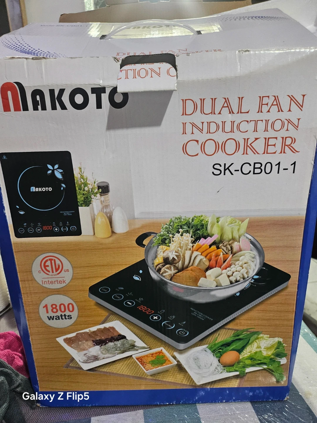 I'm selling a Makoto Dual Fan Induction Cooker, model SK-CB01-1. It's in great condition and comes with the original box. Perfect for cooking up delicious meals!