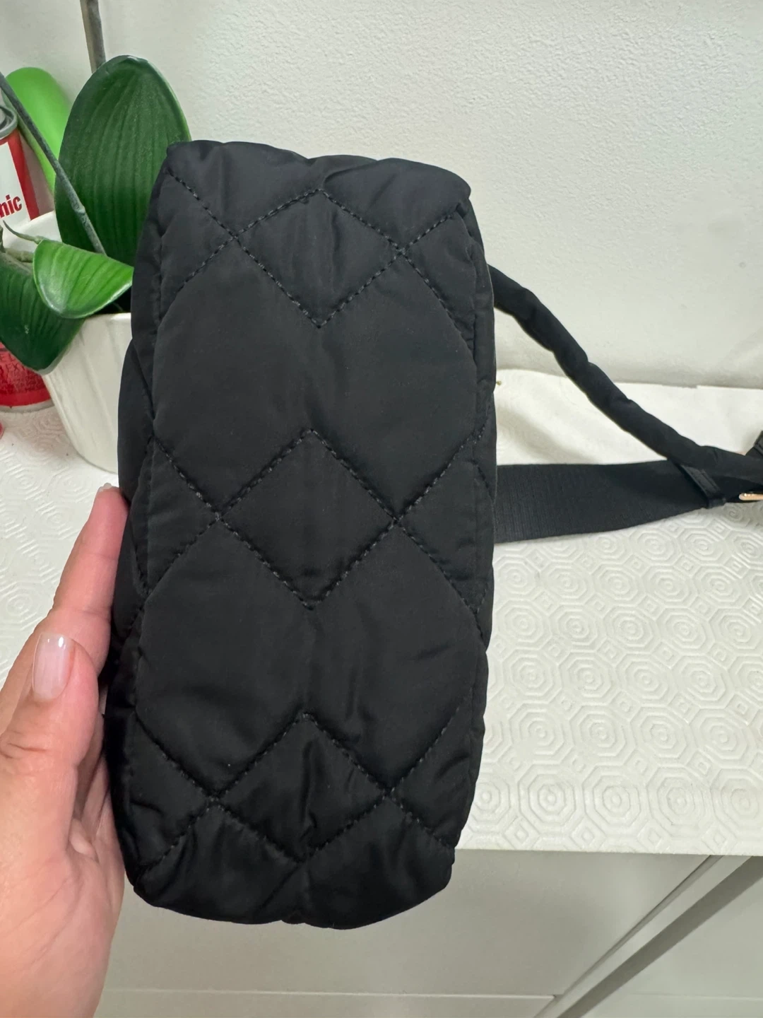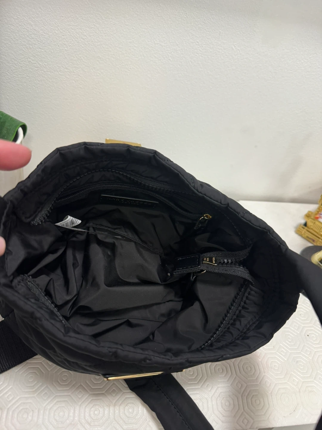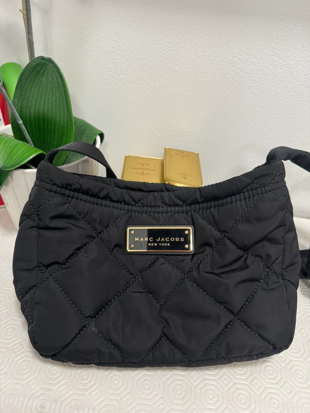 A black quilted nylon shoulder bag by Marc Jacobs. This bag is great for everyday use!