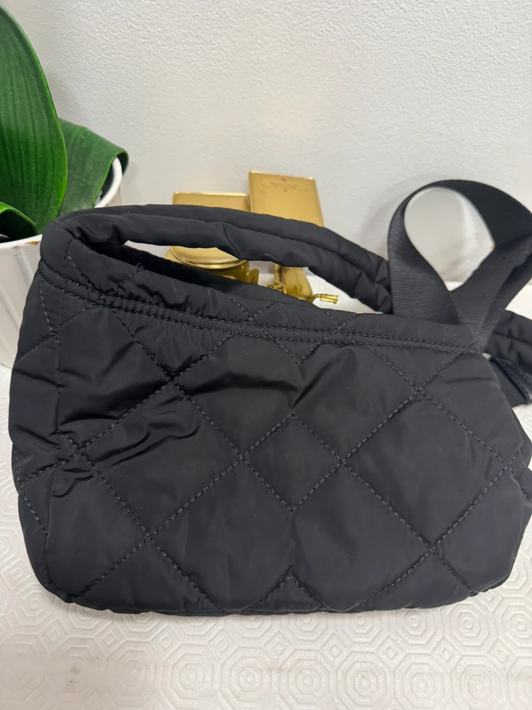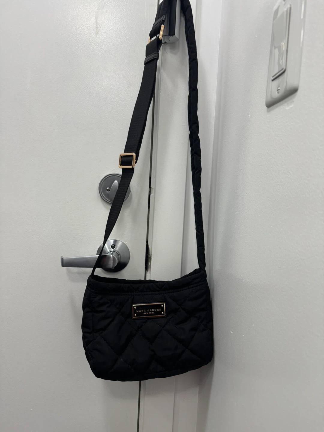 A black quilted nylon shoulder bag by Marc Jacobs. This bag is great for everyday use!