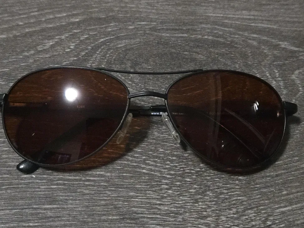 Selling a pair of High Resolution Blu Blockers aviator-style sunglasses with brown lenses and black frame. They have a classic look and are in good condition. Never used! Perfect for sunny days!